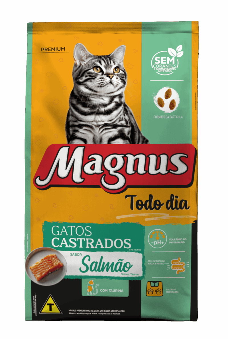 Magnus Cat Premium Gatos Adultos Castrados Sabor Salmão é um...
