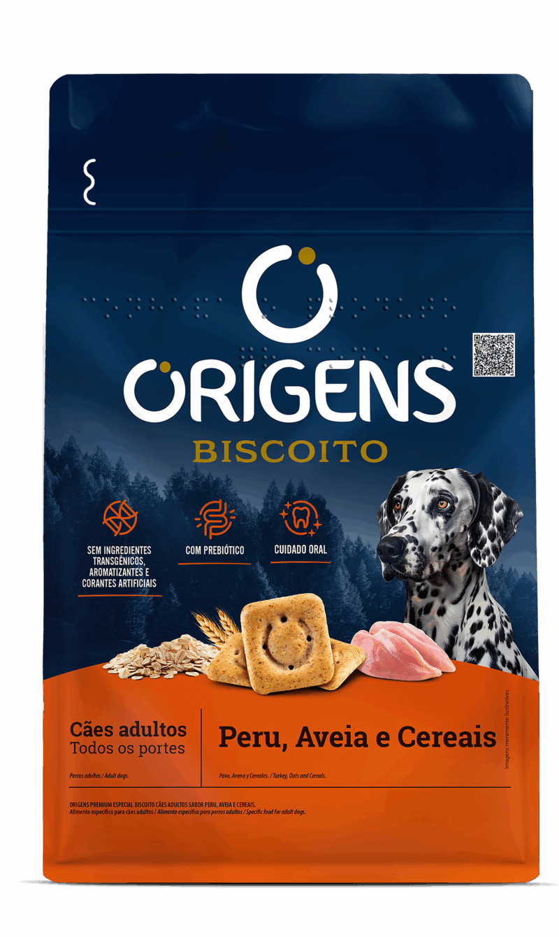 Origens Premium Especial Biscoito Cães Adultos Sabor Peru, Aveia e Cereais