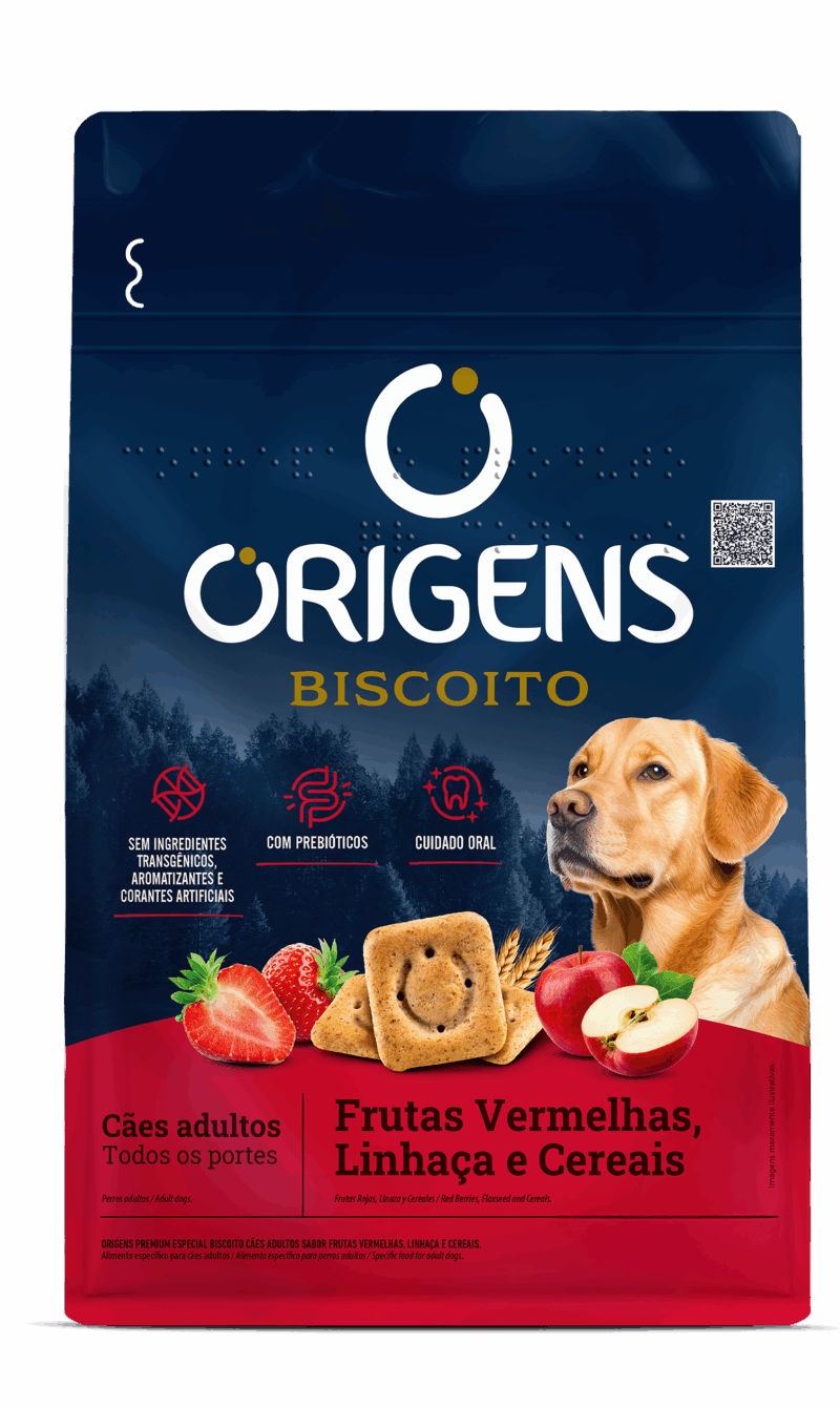 Origens Premium Especial Biscoito Cães Adultos Sabor Frutas Vermelhas, Linhaça e Cereais
