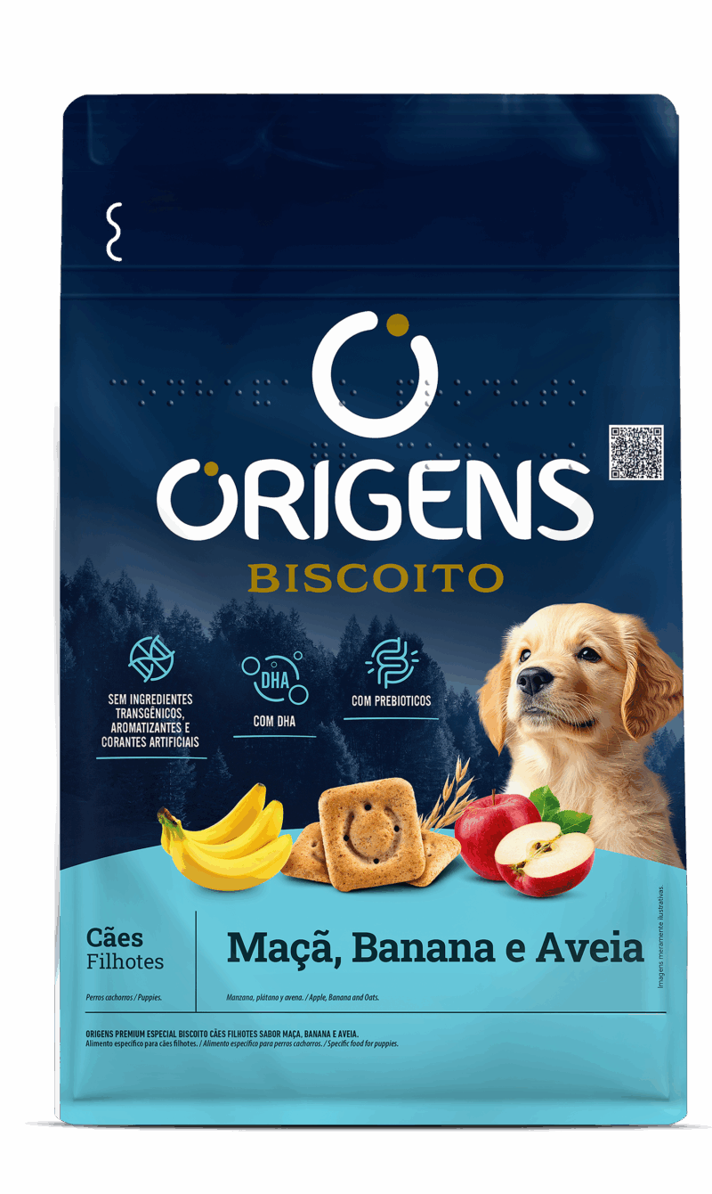 Origens Premium Especial Biscoito Cães Filhotes Sabor Banana, Maçã e Aveia