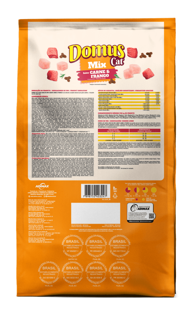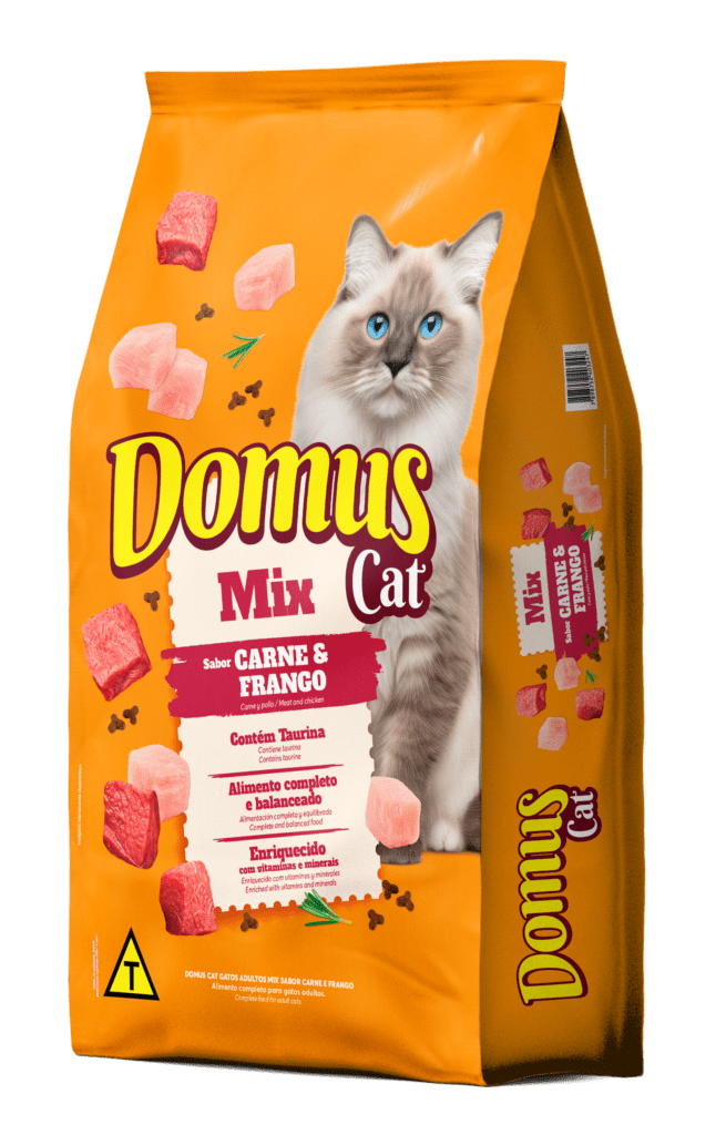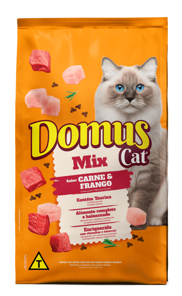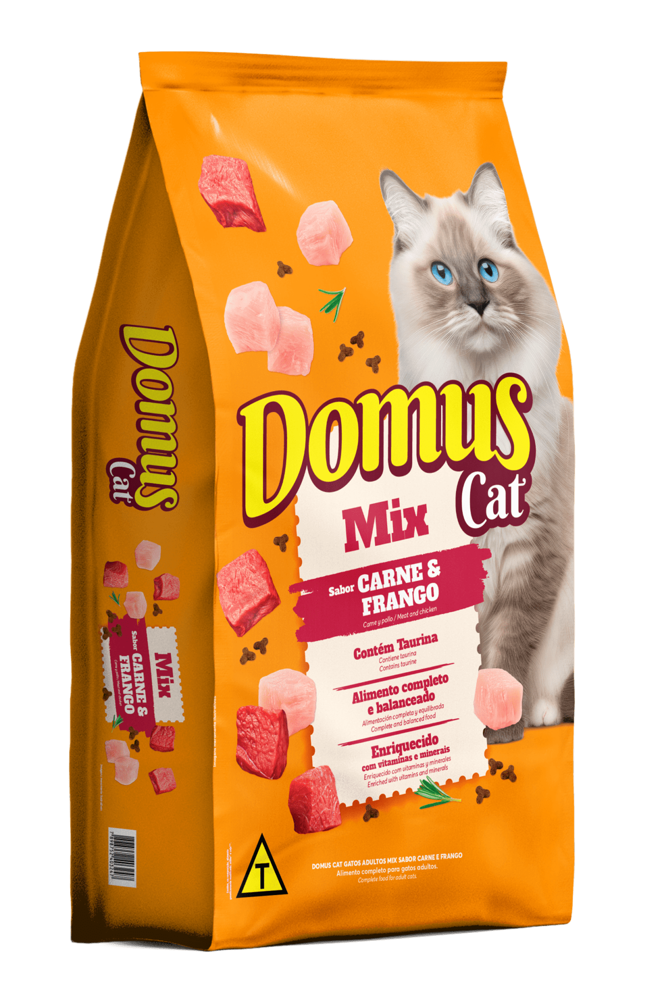 Domus Cat Mix é um alimento completo indicado para Gatos Adultos.