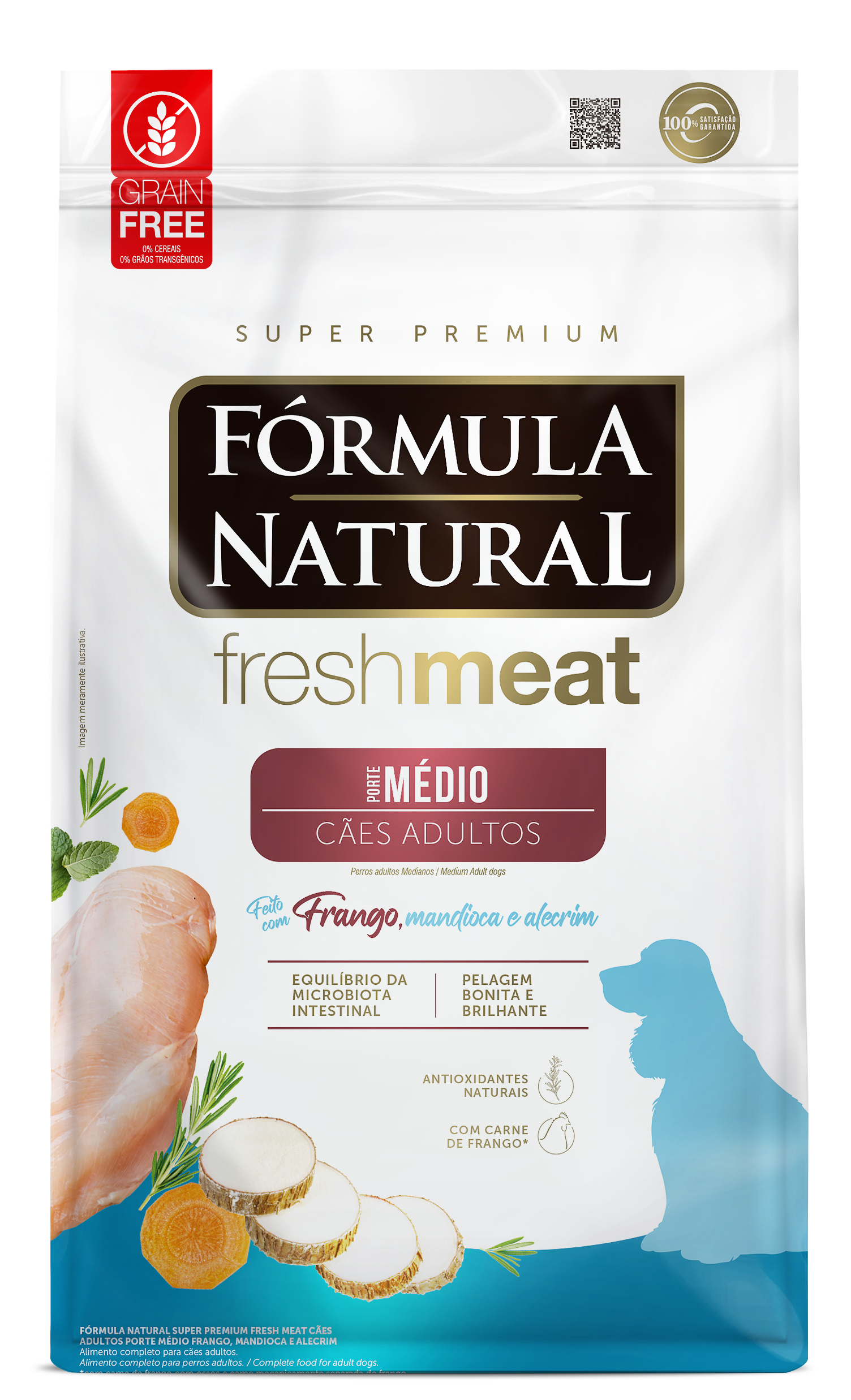 Fórmula Natural Super Premium Fresh Meat Cães Adultos Porte Médio Frango, Mandioca e Alecrim