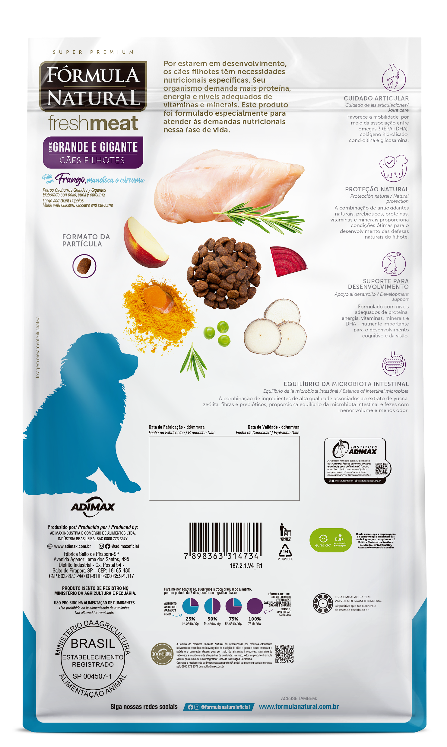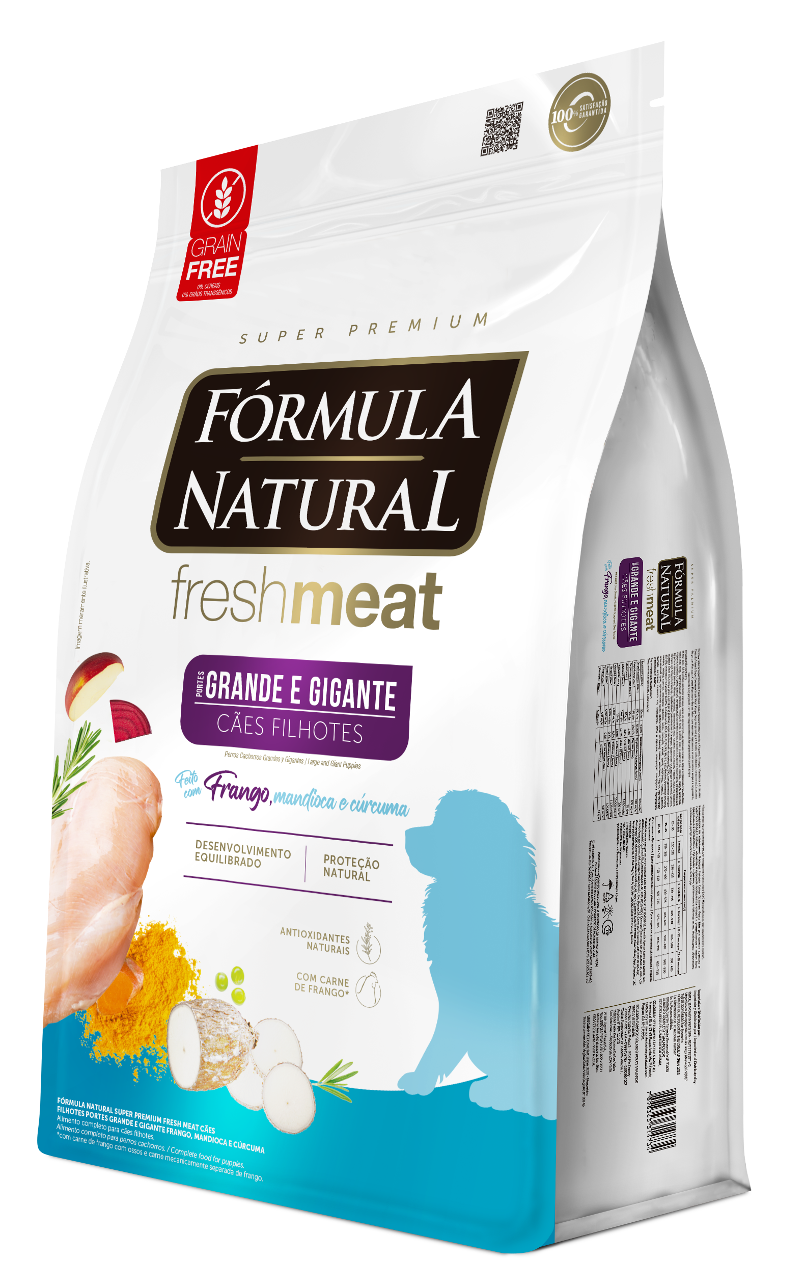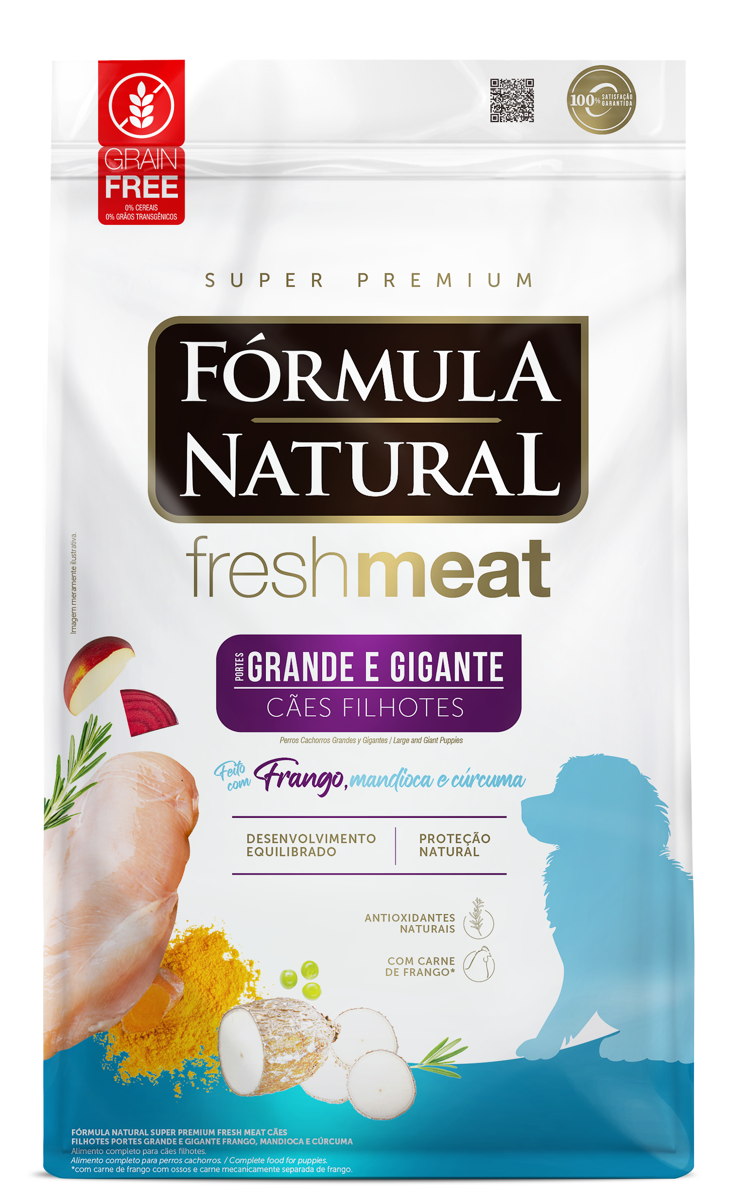 Fórmula Natural Super Premium Fresh Meat Cães Filhotes Portes Grande e Gigante Frango, Mandioca e Cúrcuma
