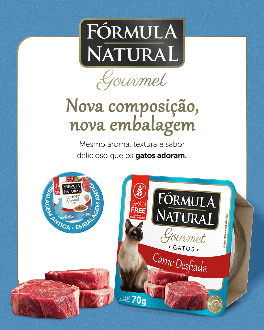 Fórmula Natural Gourmet Gatos Adultos Carne Desfiada é um alimento úmido de alta qualidade para gatos adultos, indicado para momentos de agrado e recompensa. Desenvolvido com a combinação de carnes selecionadas e vegetais, oferece uma opção saborosa que valoriza o vínculo entre o responsável e seu pet. Fórmula Natural Gourmet não contém conservantes, corantes, ingredientes transgênicos nem a presença de grãos, reforçando o cuidado em oferecer uma experiência mais natural. Seu elevado teor de umidade também desempenha um papel importante, contribuindo para o cuidado com a saúde do trato urinário dos pets.
