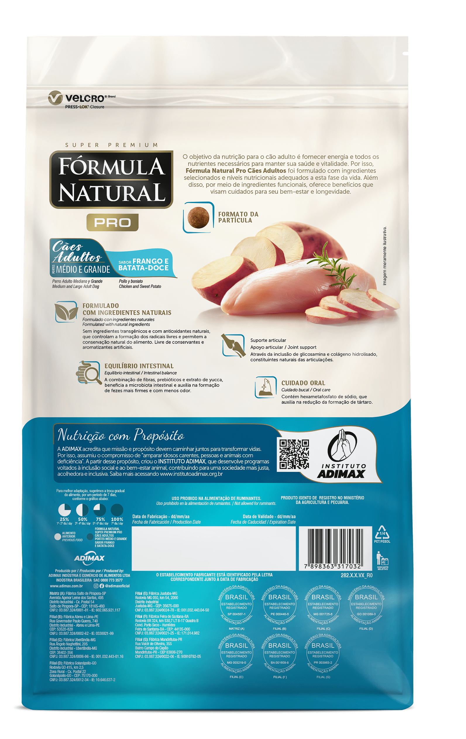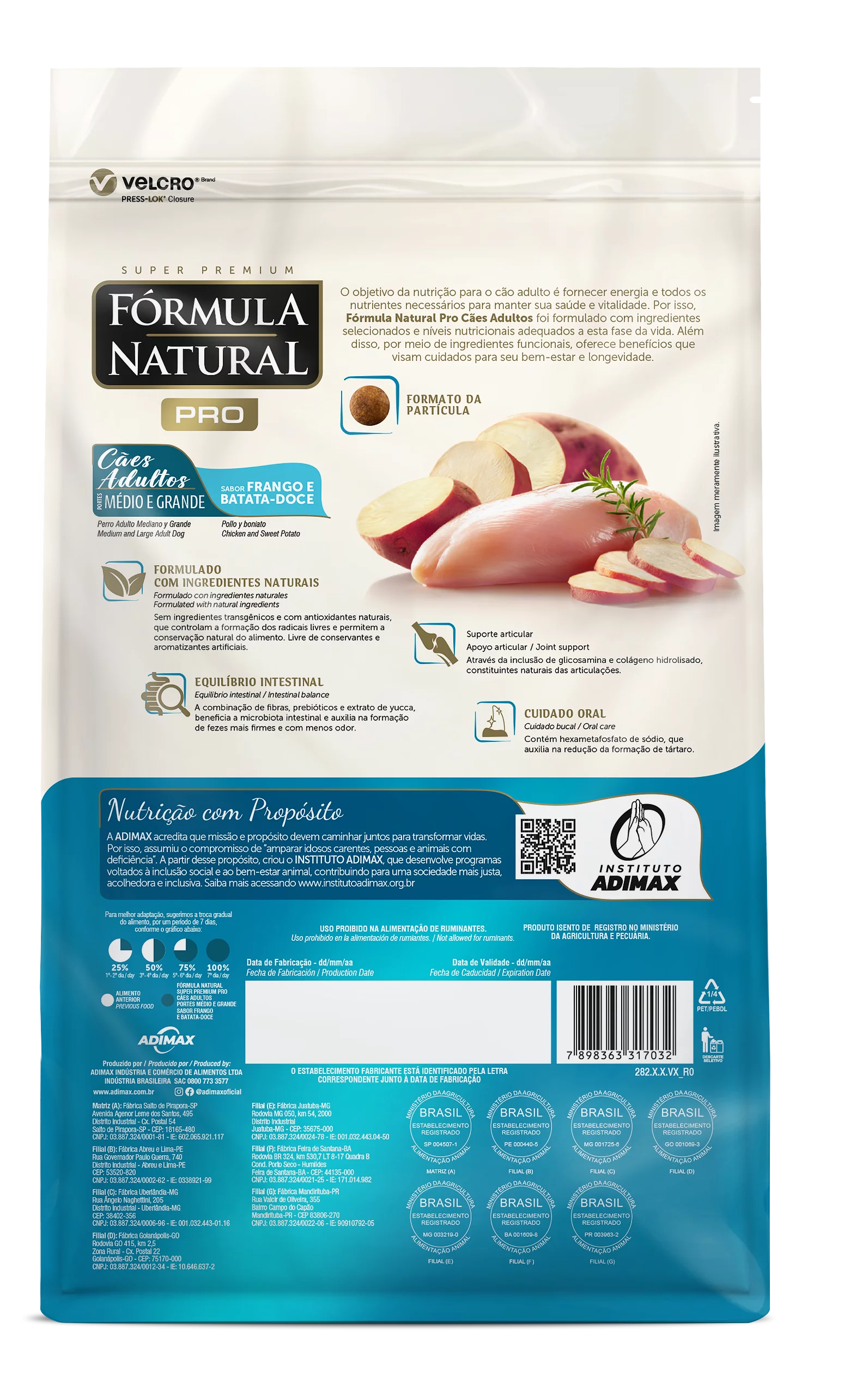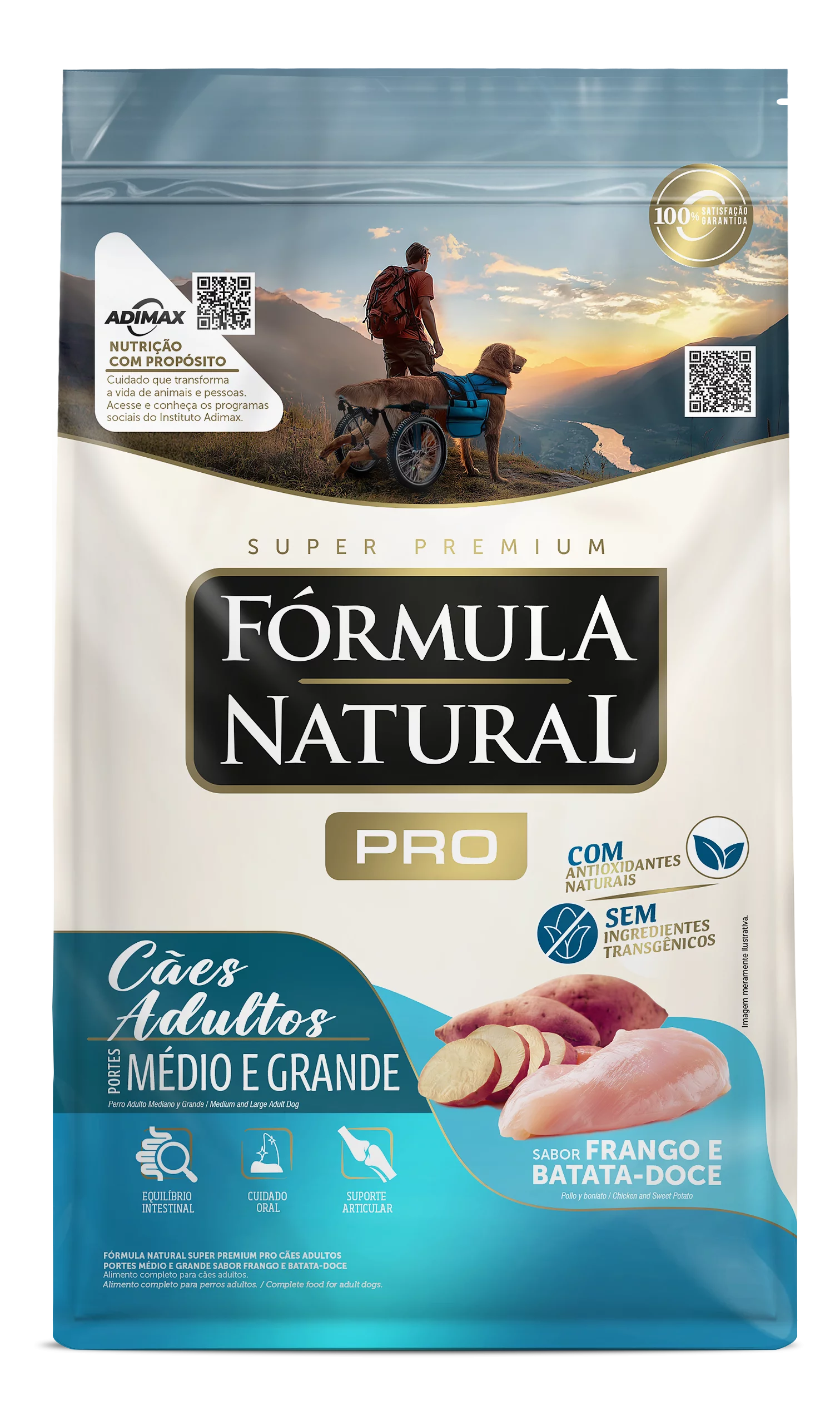 Fórmula Natural Super Premium Pro Cães Adultos Portes Médio e Grande Sabor Frango e Batata-Doce