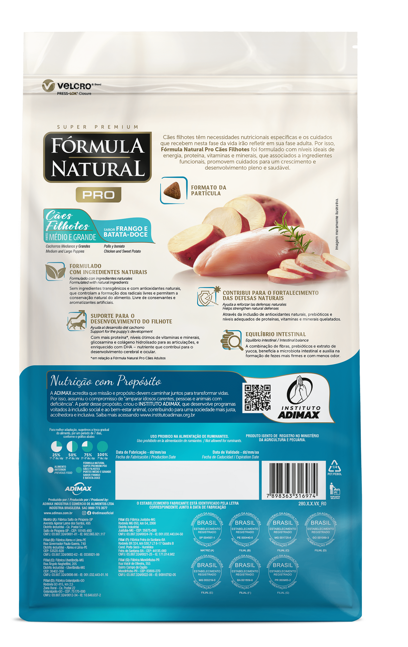 Fórmula Natural Super Premium Pro Cães Filhotes Portes Médio e Grande Sabor Frango e Batata-Doce