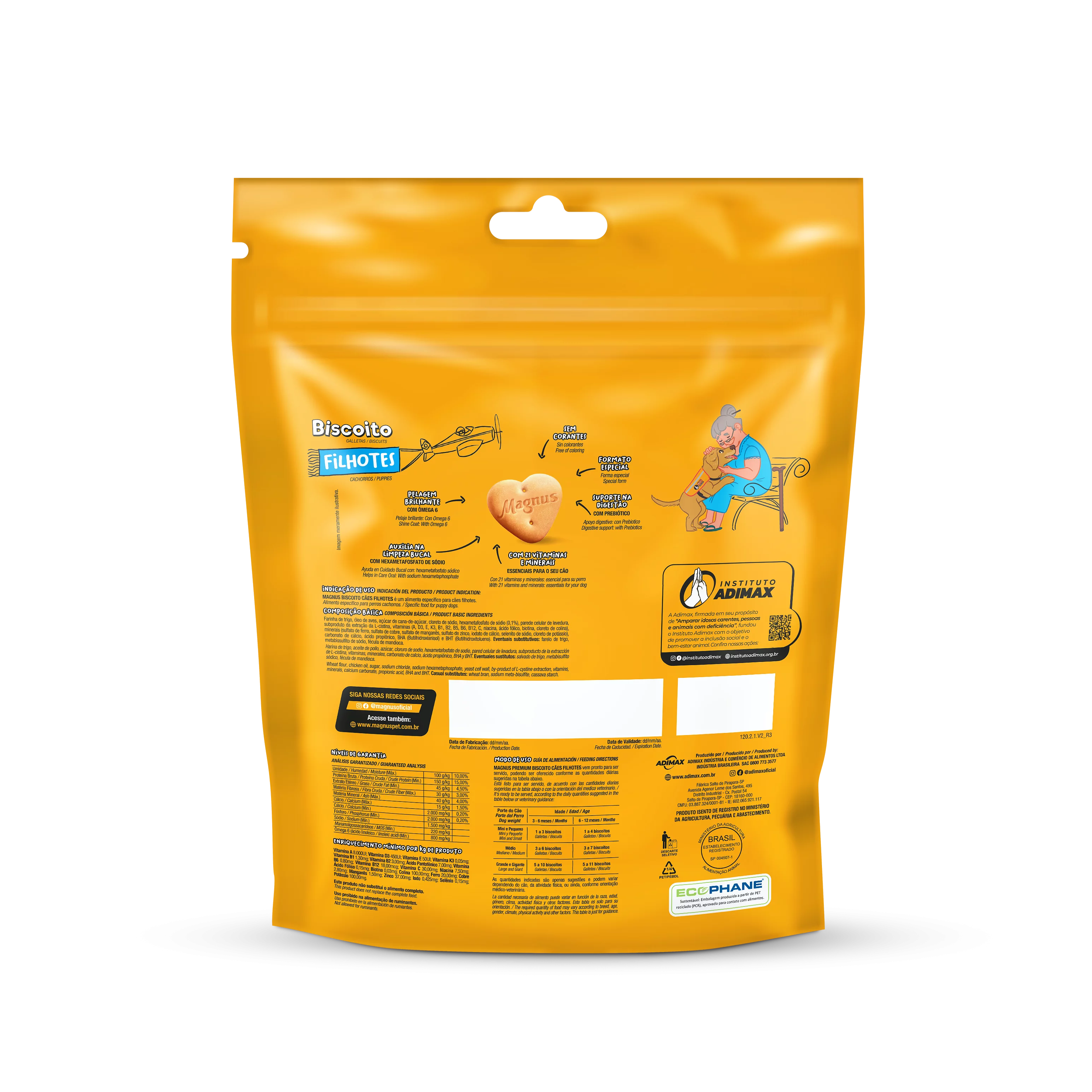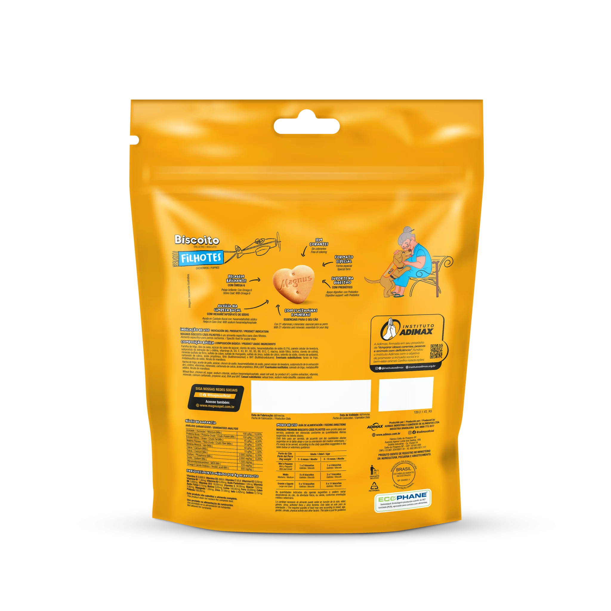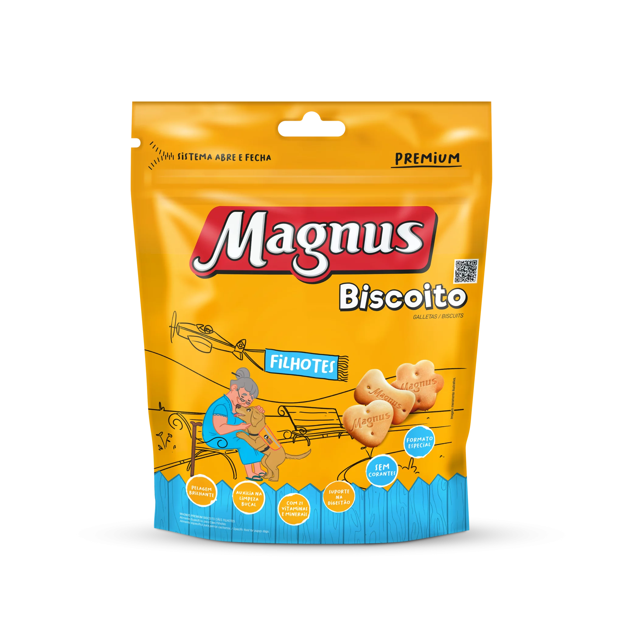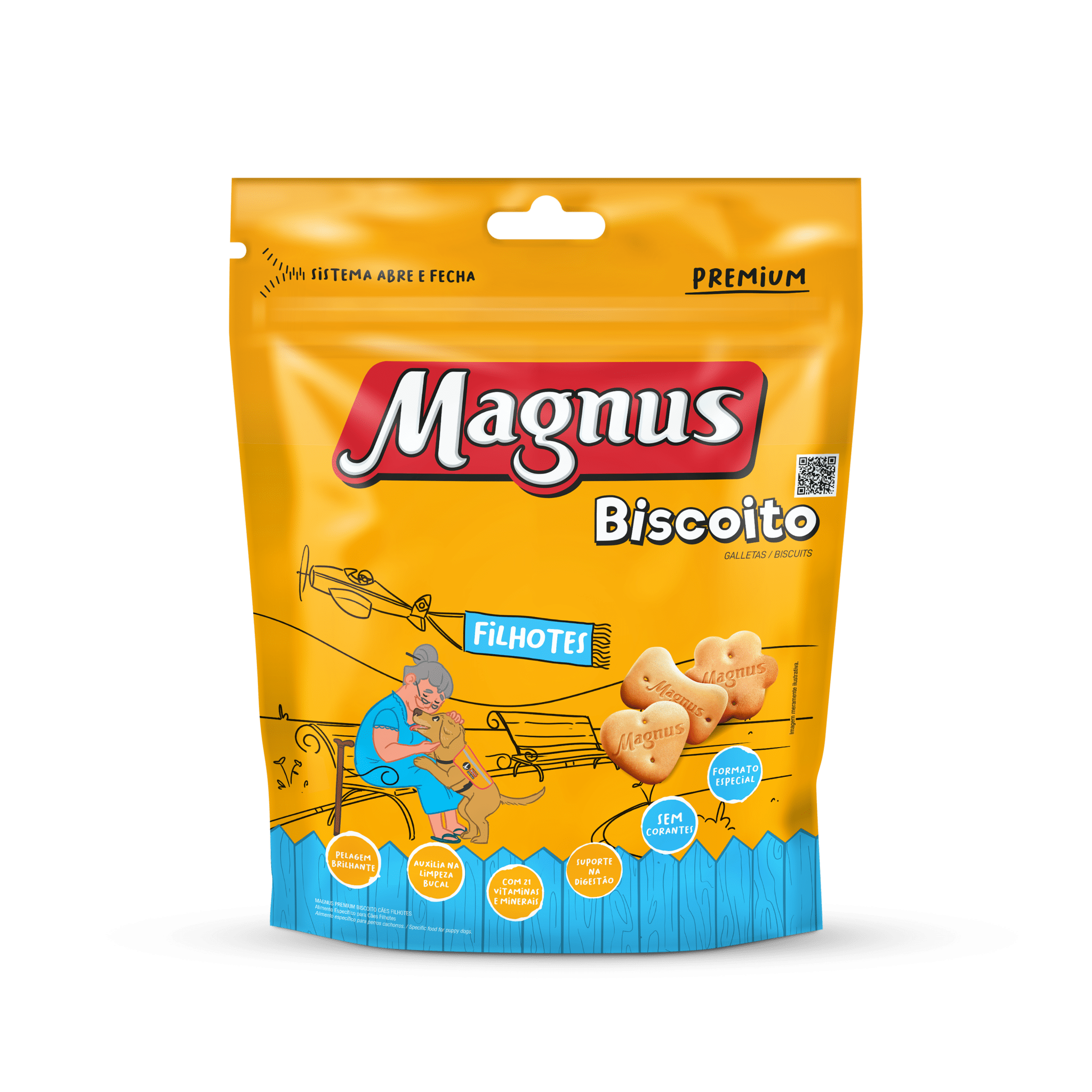Magnus Biscoitos Cães Filhotes é um biscoito especifico para cães de todos os portes, elaborado com ingredientes especialmente selecionados que proporciona um sabor inigualável, além de auxiliar na limpeza bucal, Pode ser oferecido ao seu cão como demonstração de carinho, em momentos de diversão ou como recompensa em treinamentos.
