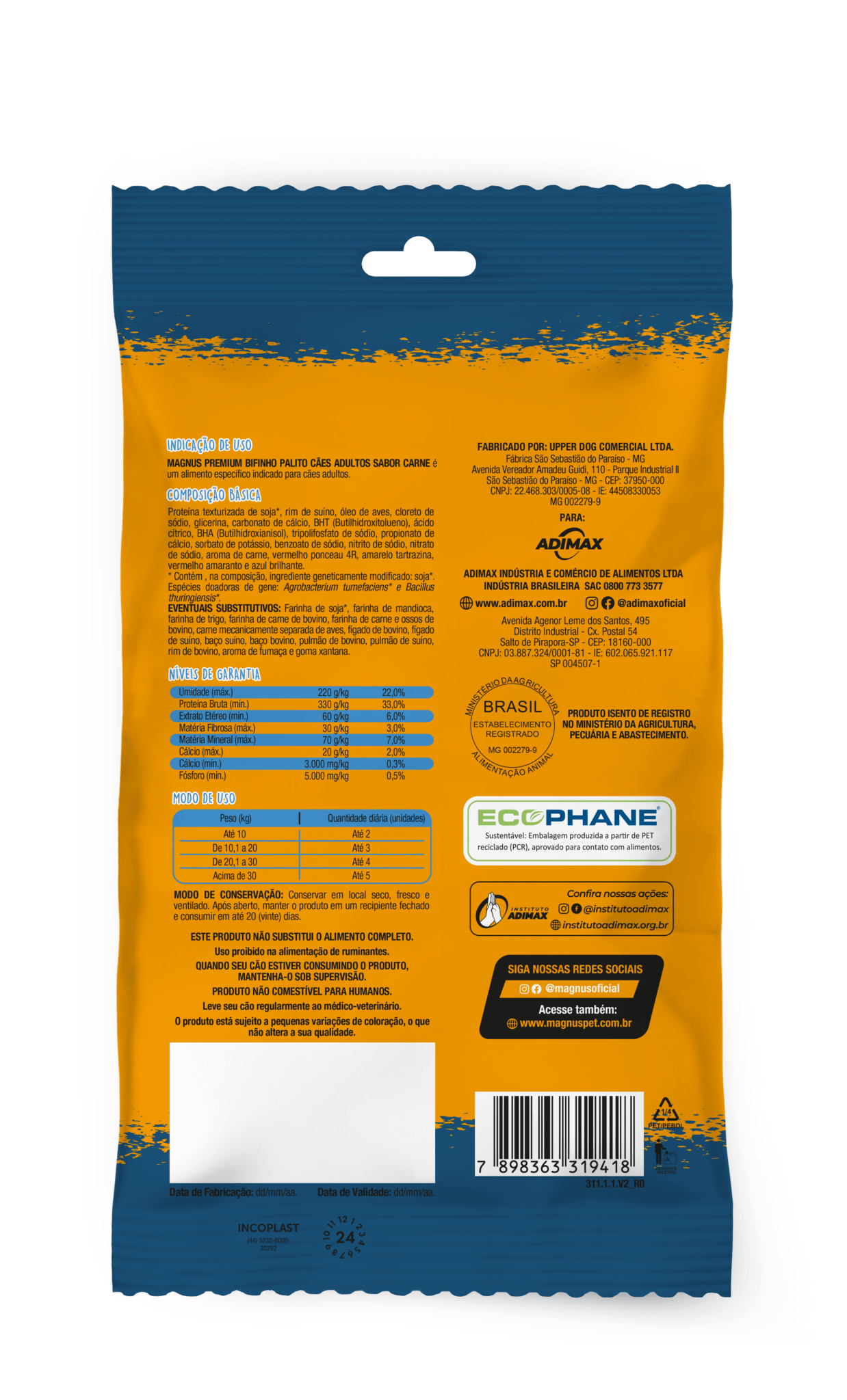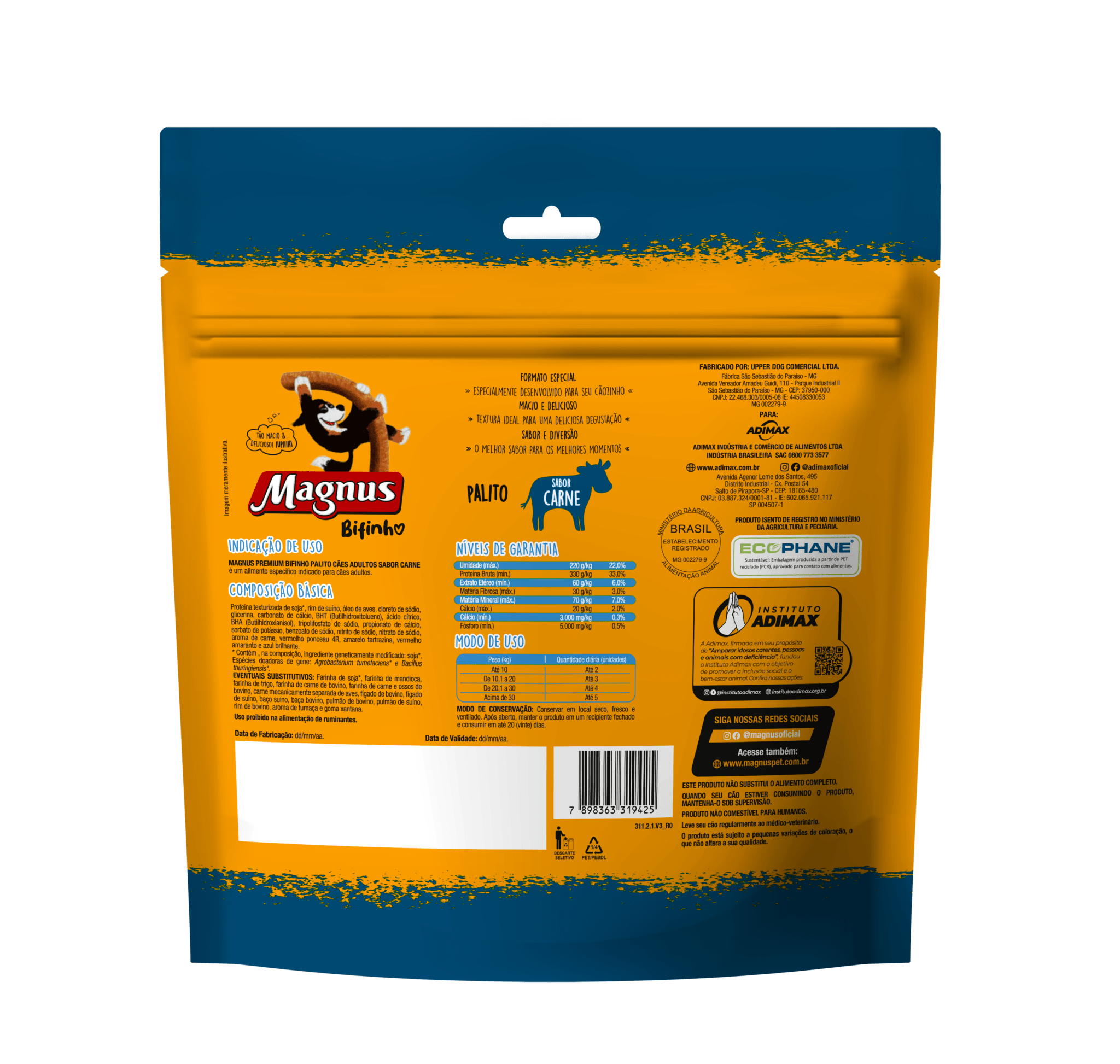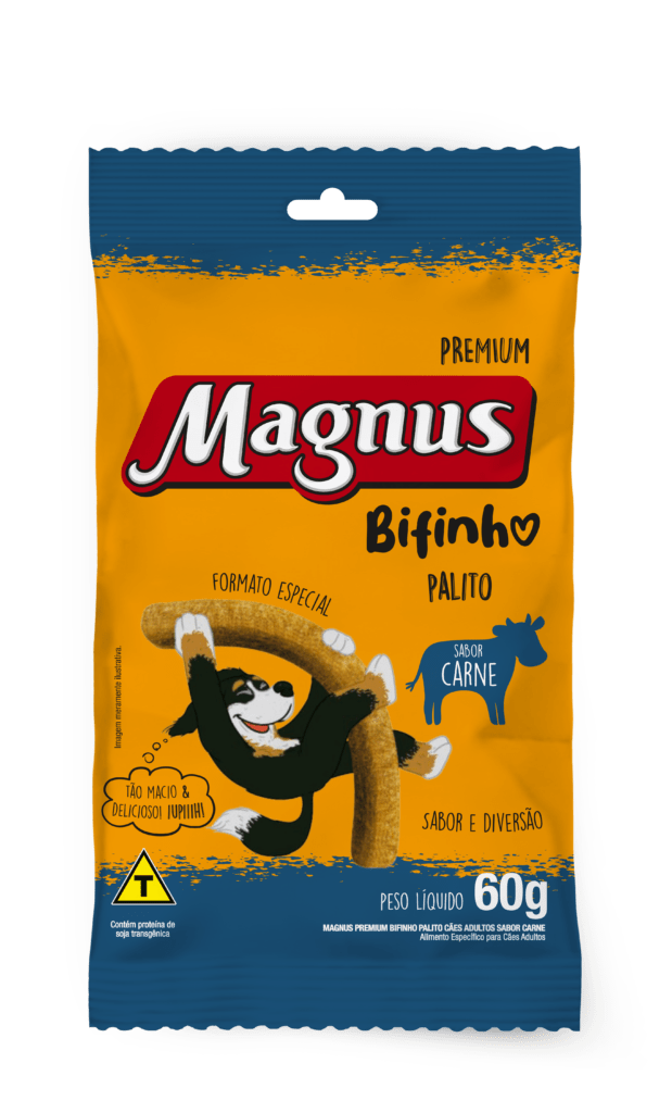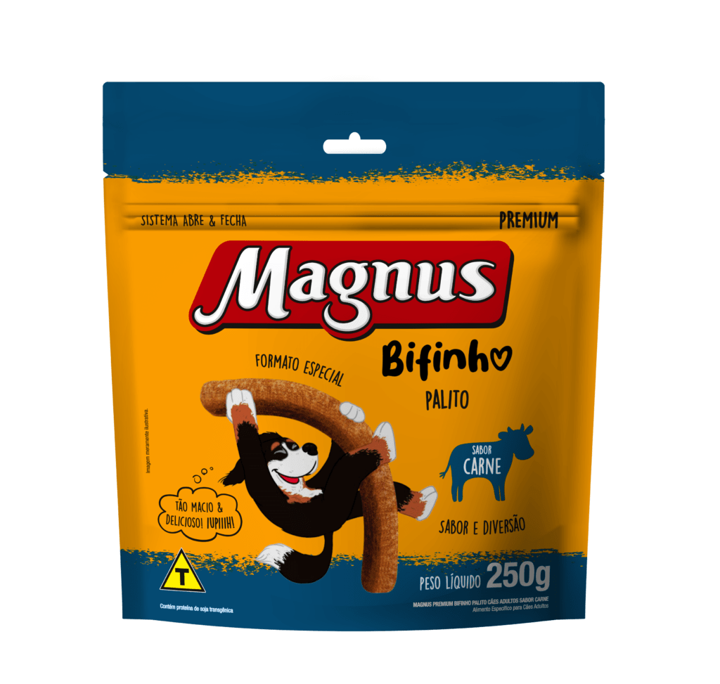 Magnus Bifinho Palito Sabor Carne é indicado para cães adultos de todos os portes. Aproveite os momentos de diversão e alegria com o seu melhor amigo. Ofereça para ele Magnus Bifinho Palito!