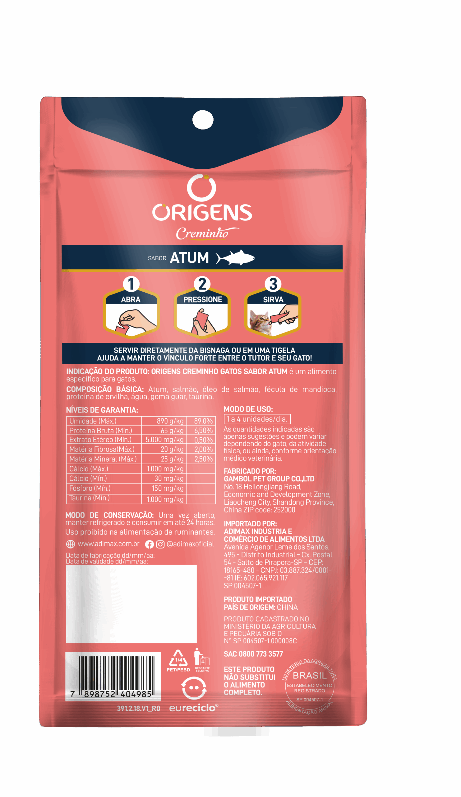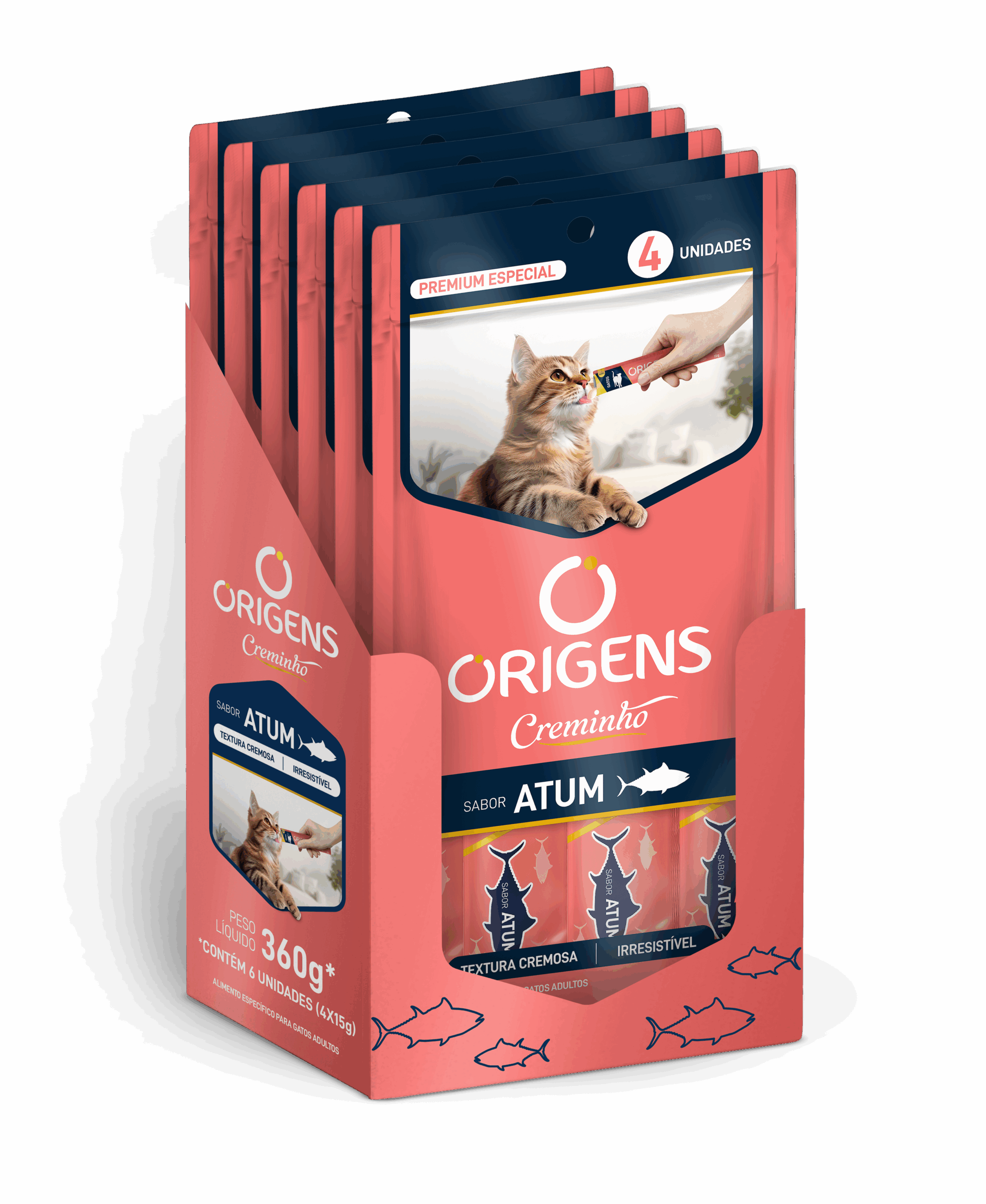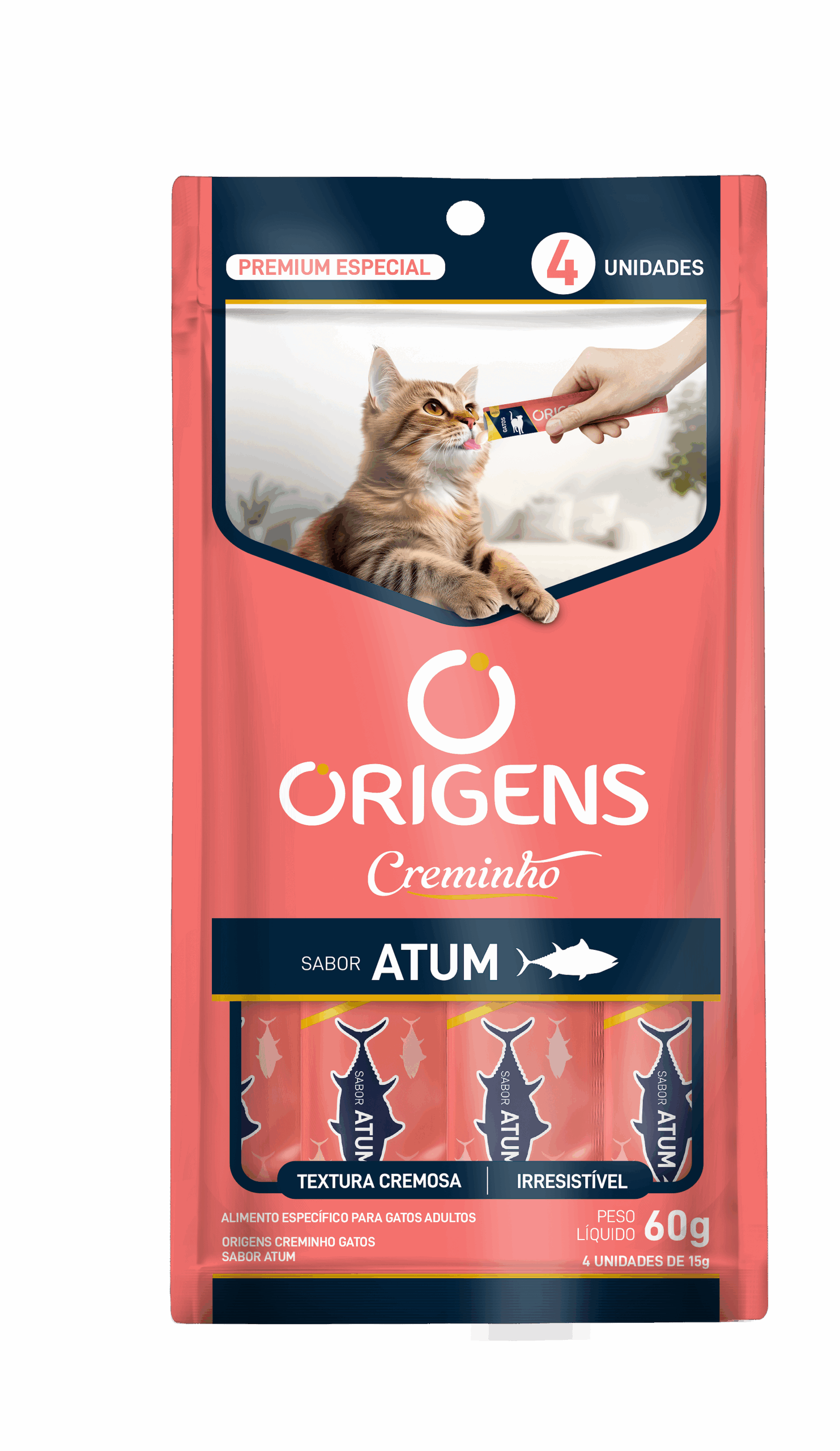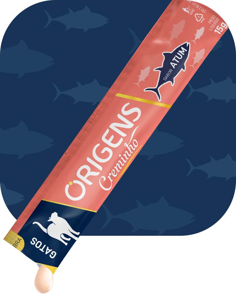 Origens Creminho é uma linha de petiscos com textura cremosa que vai proporcionar momentos únicos de interação entre o tutor e seu gato! Os produtos Origens Creminho foram formulados com ingredientes selecionados e de alta qualidade, como as carnes frescas, que estimulam o apetite do gato e agradam os paladares mais exigentes. Além disso, são petiscos saudáveis, formulados sem a inclusão de grãos, ingredientes transgênicos ou corantes e conservantes artificiais. Com alto teor de umidade, Origens Creminho ainda favorece uma maior ingestão de água e tem baixa caloria. Origens creminho está disponível em três opções de sabores irresistíveis: carne, frango e salmão.