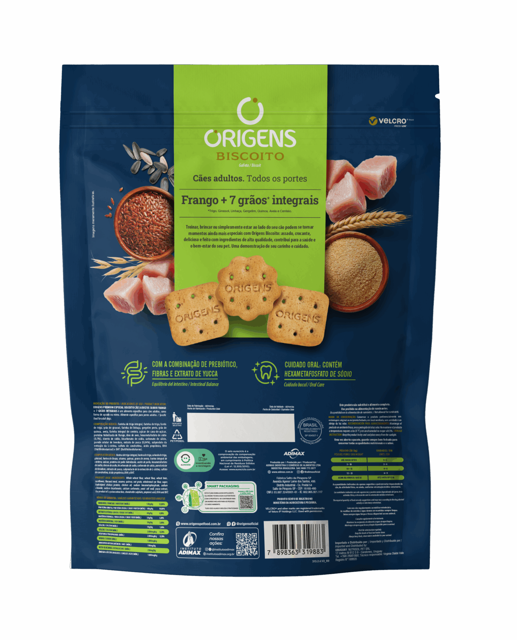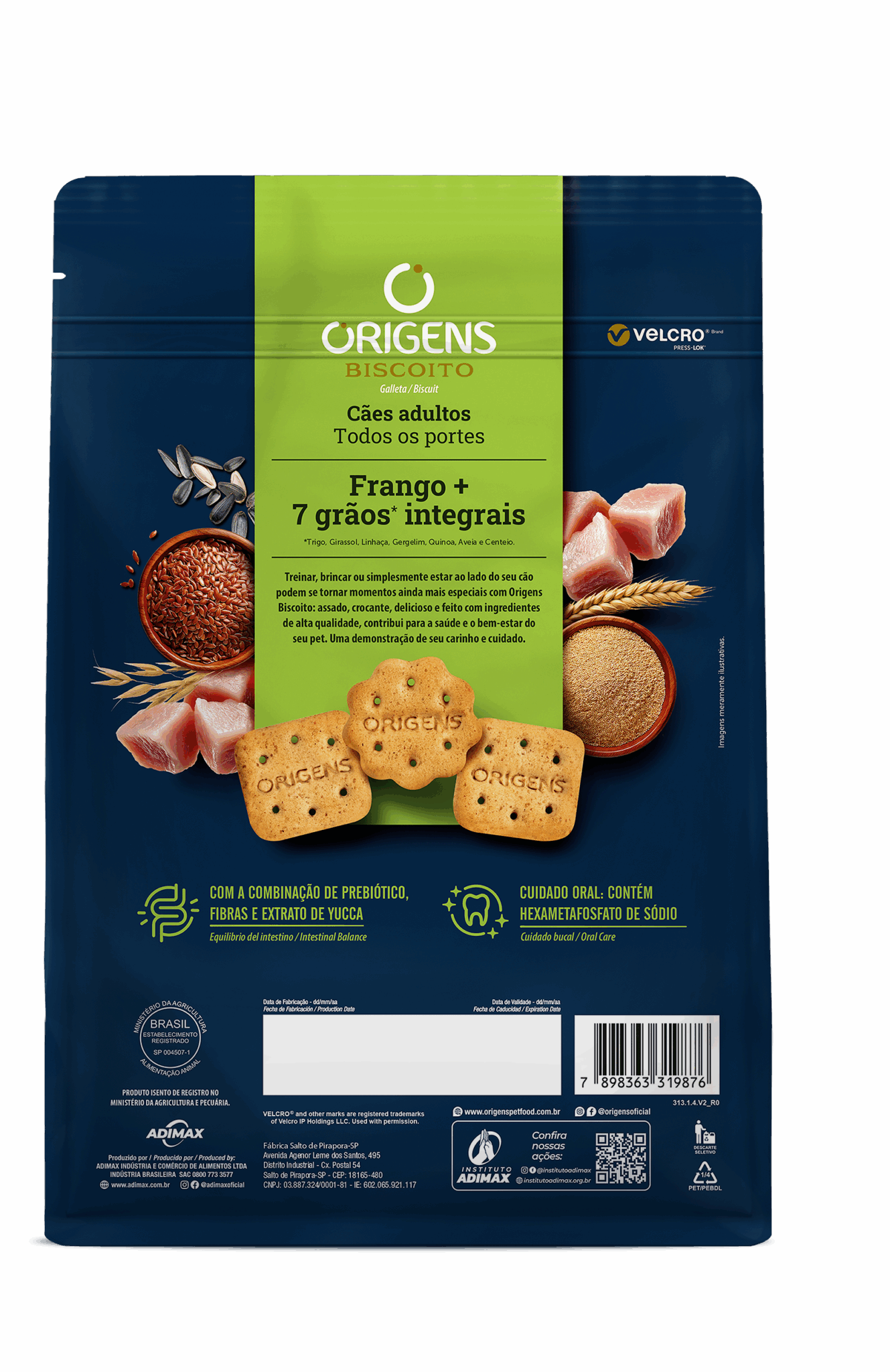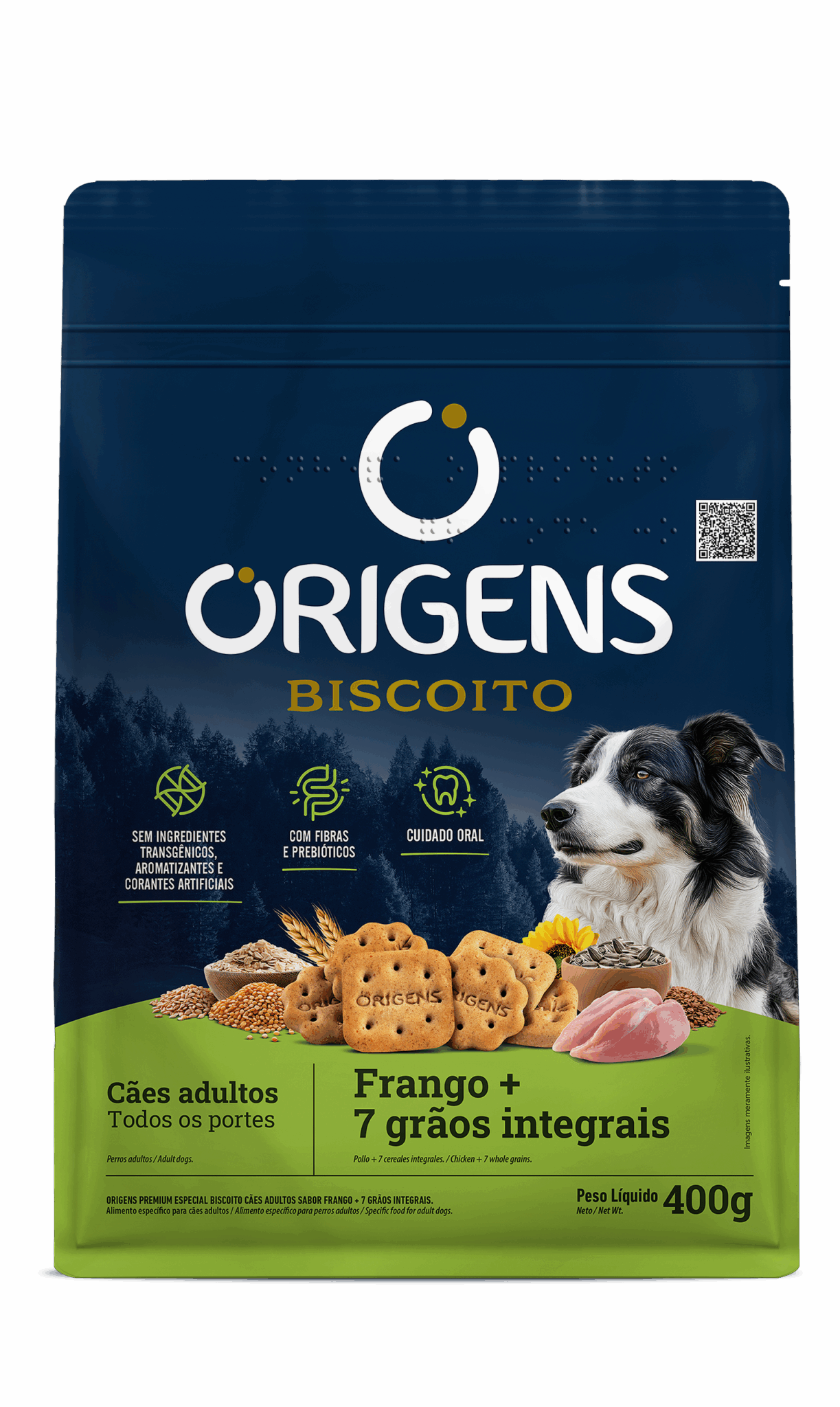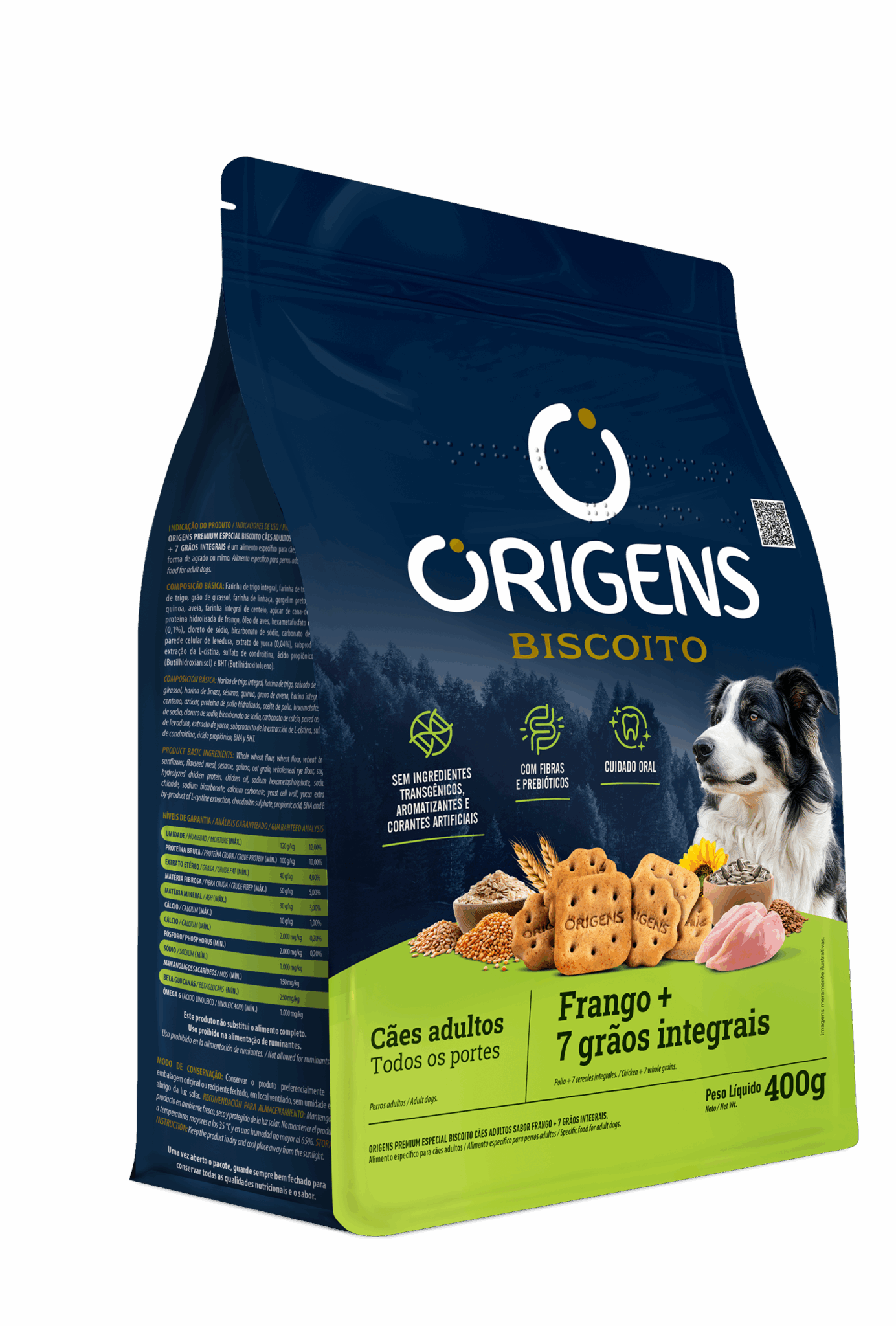 Origens Biscoito é uma linha de alta qualidade para cães filhotes e adultos. Indicado como recompensa e agrado, os biscoitos Origens oferecem variedade de sabores e podem ser encontrados em versões para diferentes portes.