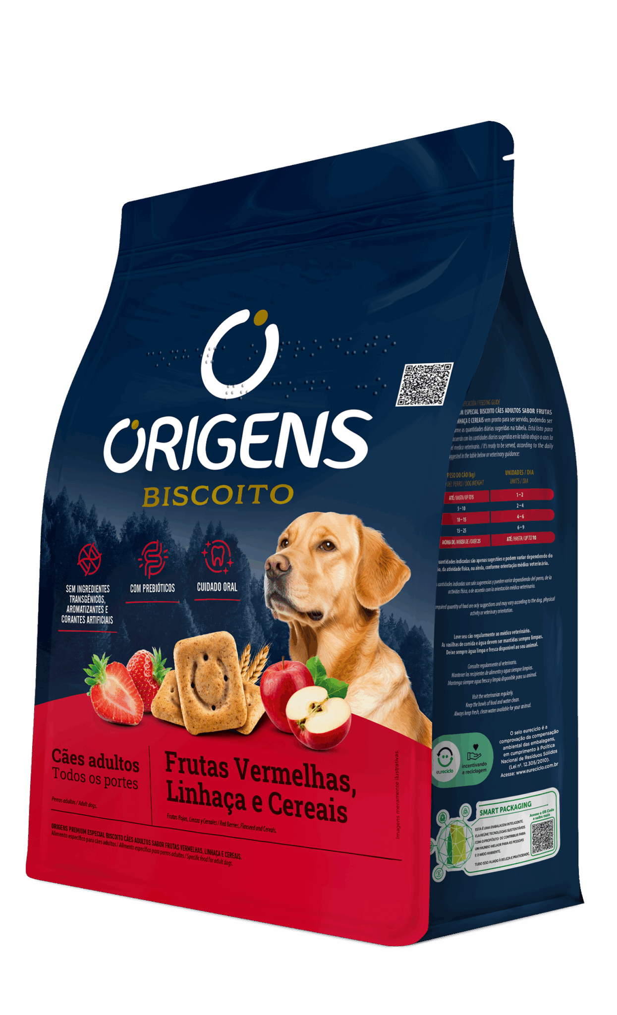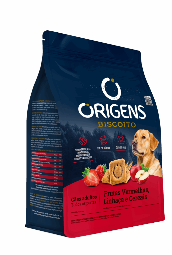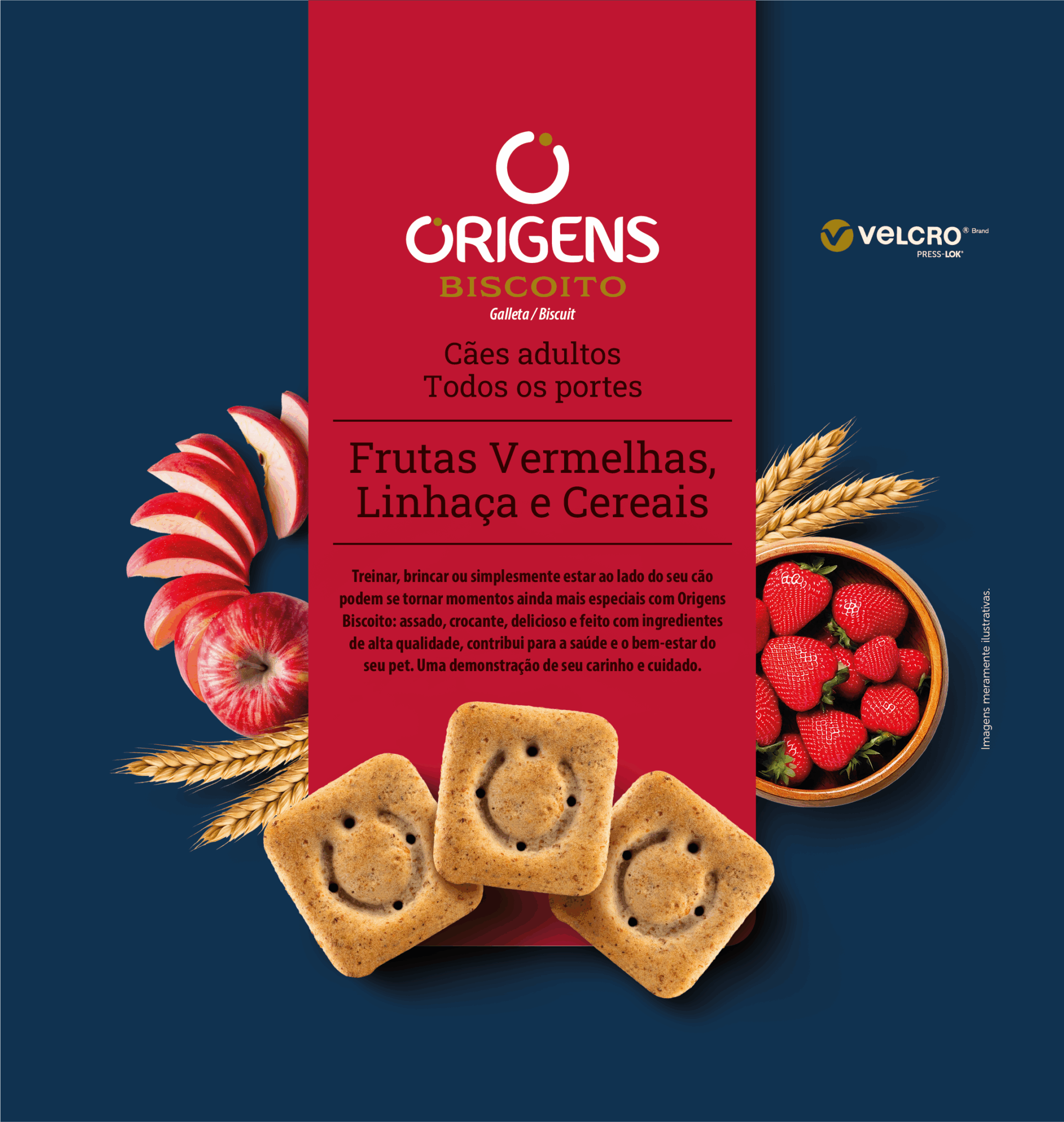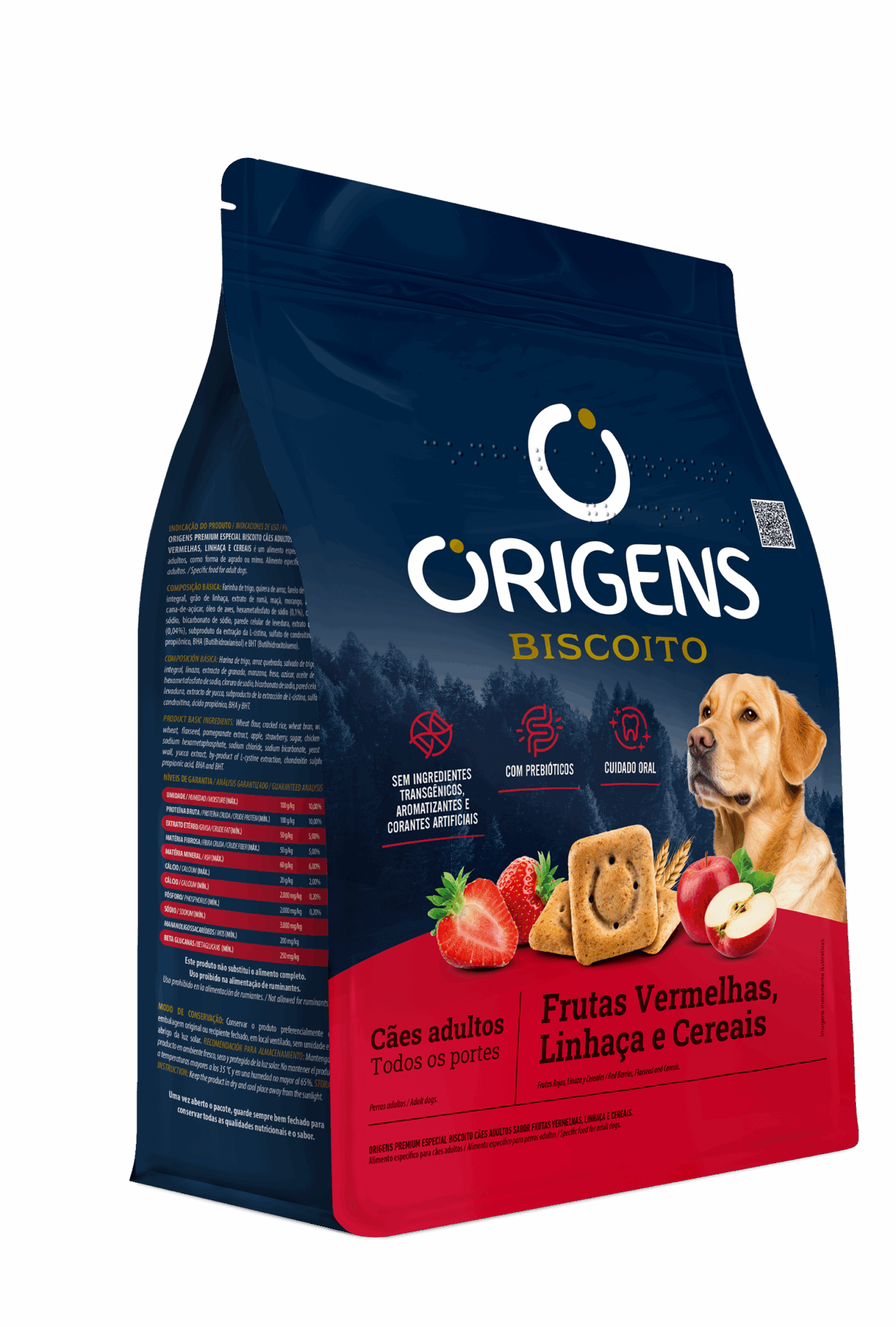 Origens Biscoito é uma linha de alta qualidade para cães filhotes e adultos. Indicado como recompensa e agrado, os biscoitos Origens oferecem variedade de sabores e podem ser encontrados em versões para diferentes portes. É um petisco saudável e saboroso com ingredientes como banana, maçã, aveia, frutas vermelhas, linhaça, peru e cereais.