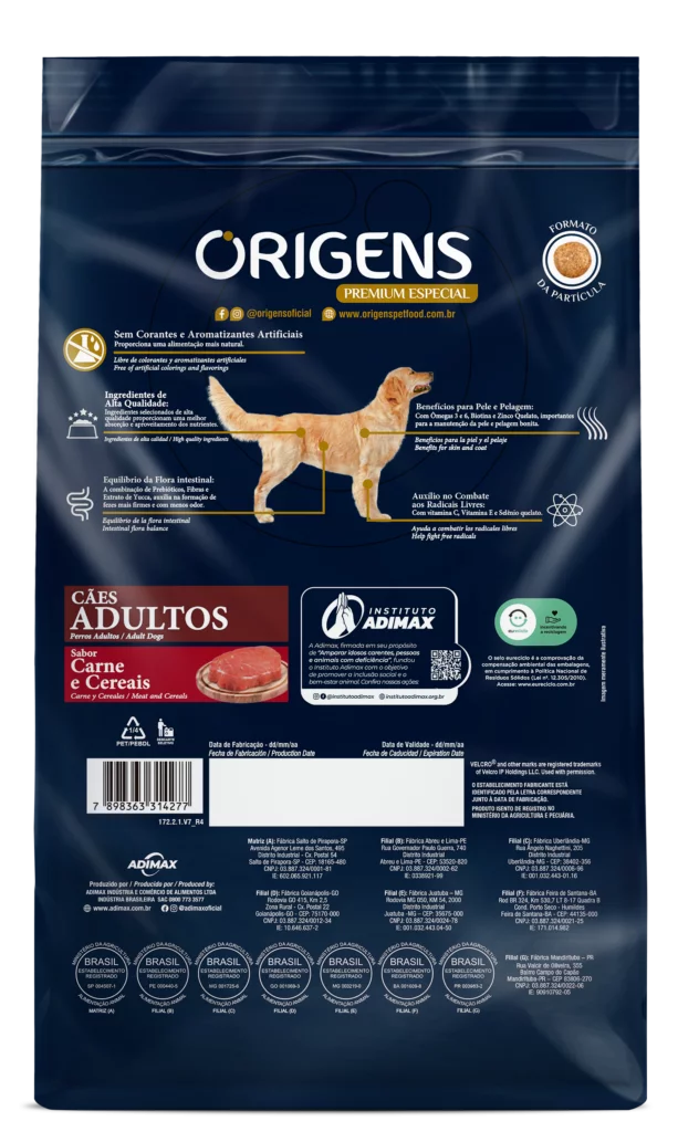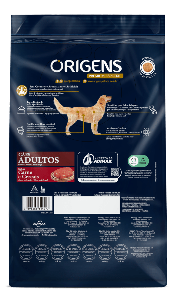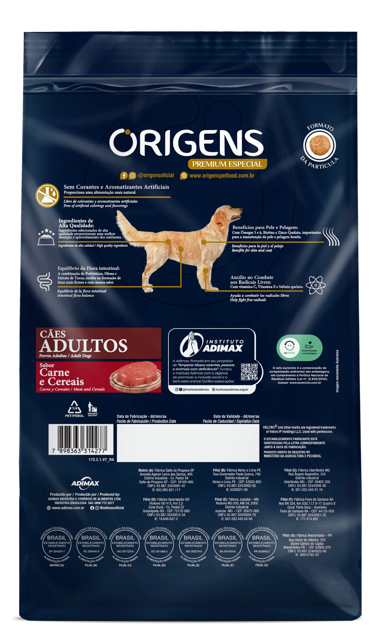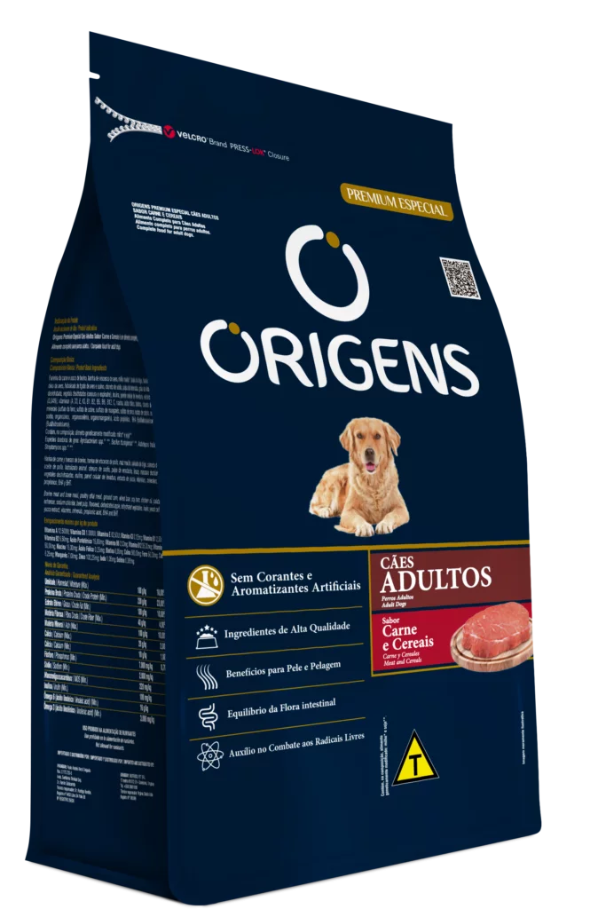 Origens é uma linha de alimentos Premium Especial que nutre o que há de melhor: o amor. Promover saúde e prazer a cada refeição é antes de tudo um ato de carinho, que estreita laços e prolonga os dias de alegria, amizade e amor incondicional entre tutores e seus cães e gatos. Origens Cães Adultos Sabor Carne e Cereais possui ingredientes de alta qualidade e não contém corantes e aromatizantes artificiais.