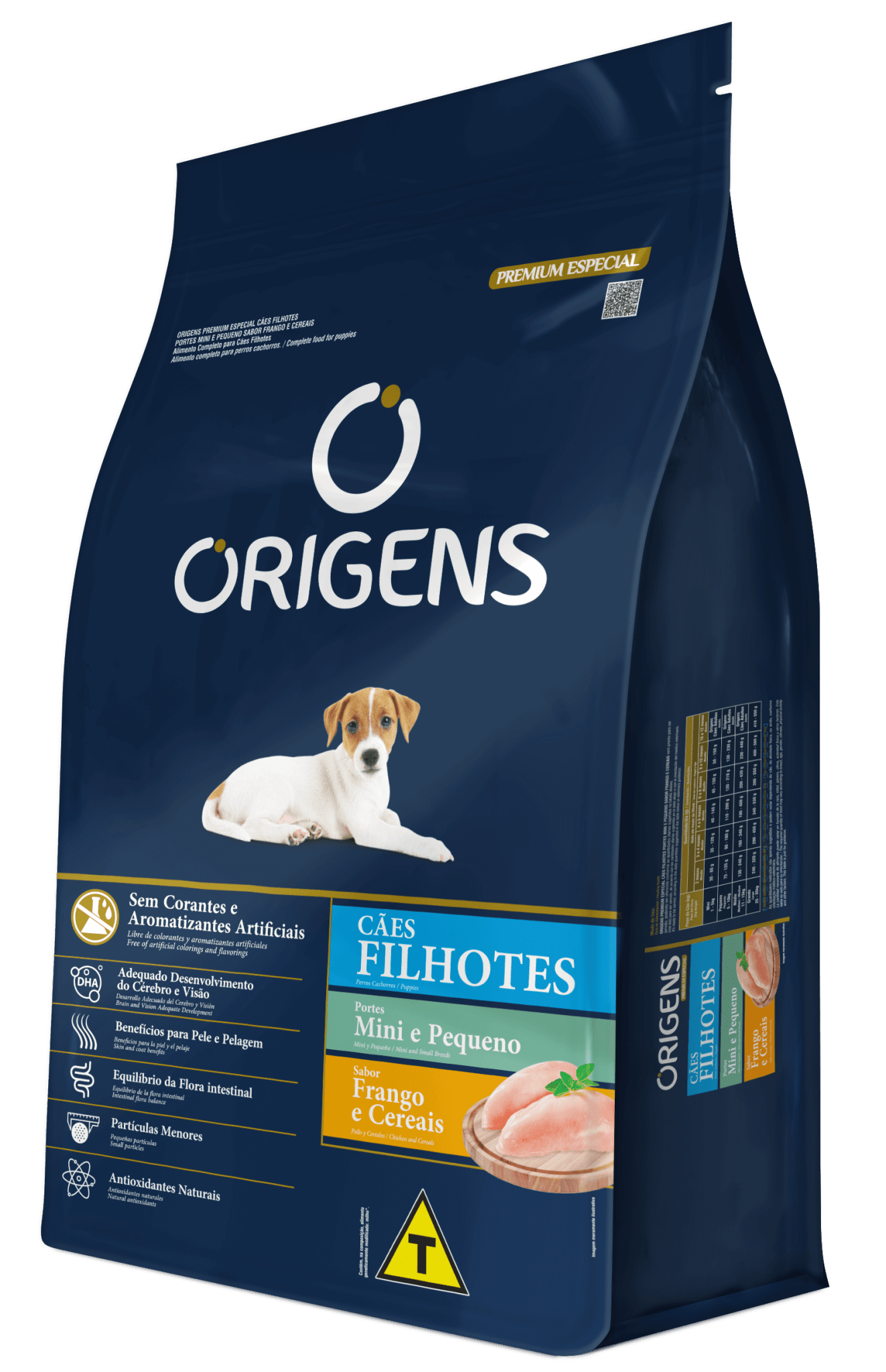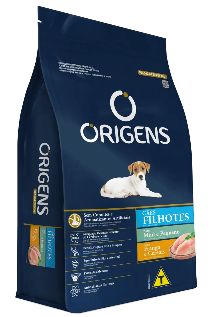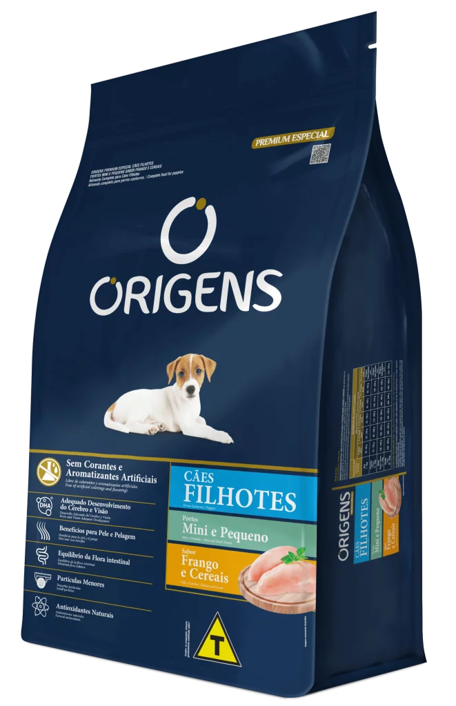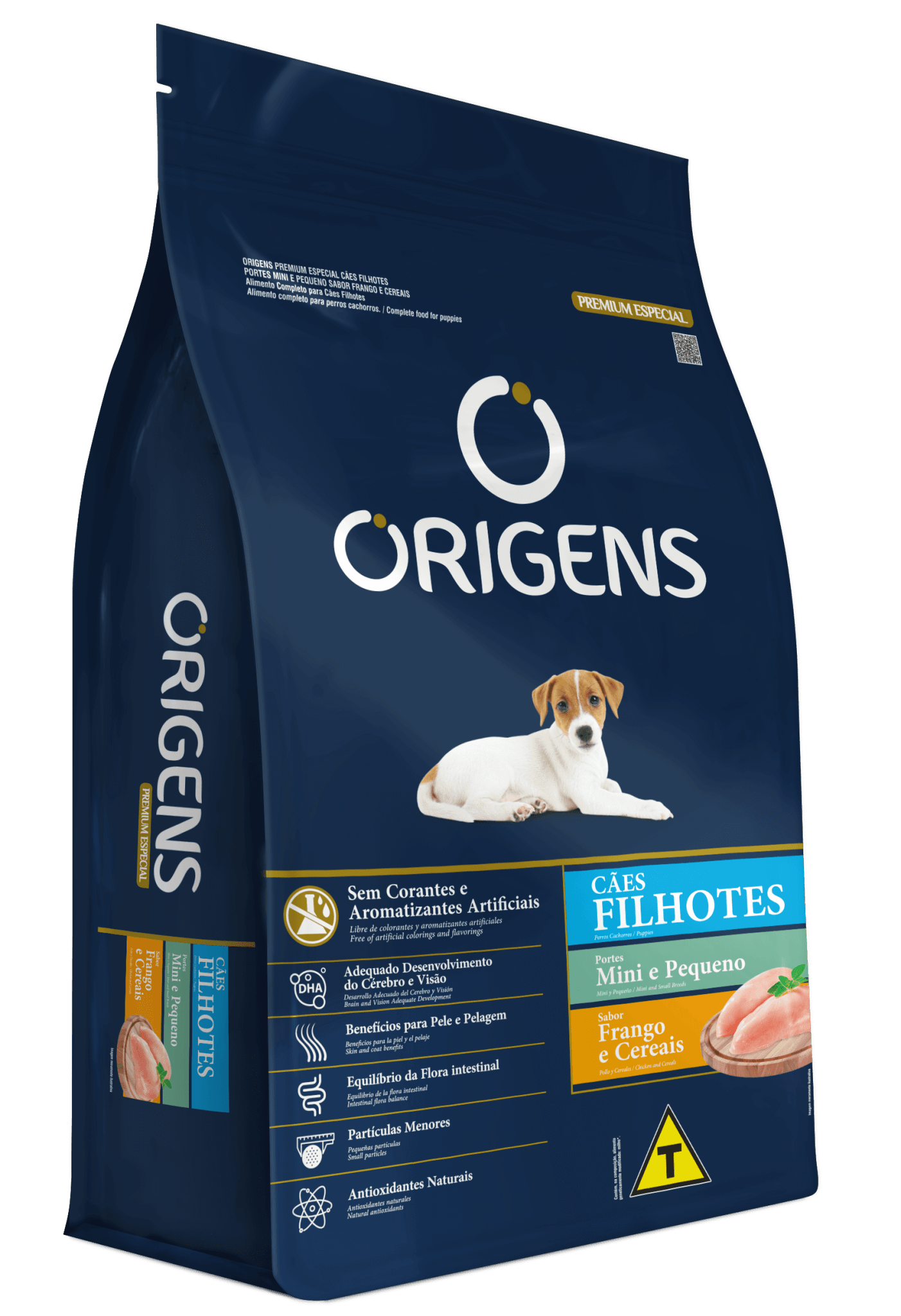 Origens Premium Especial Cães Filhotes Portes Mini e Pequeno Sabor Frango e Cereais