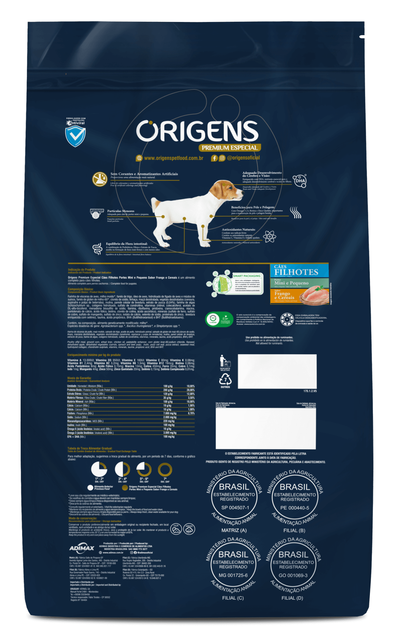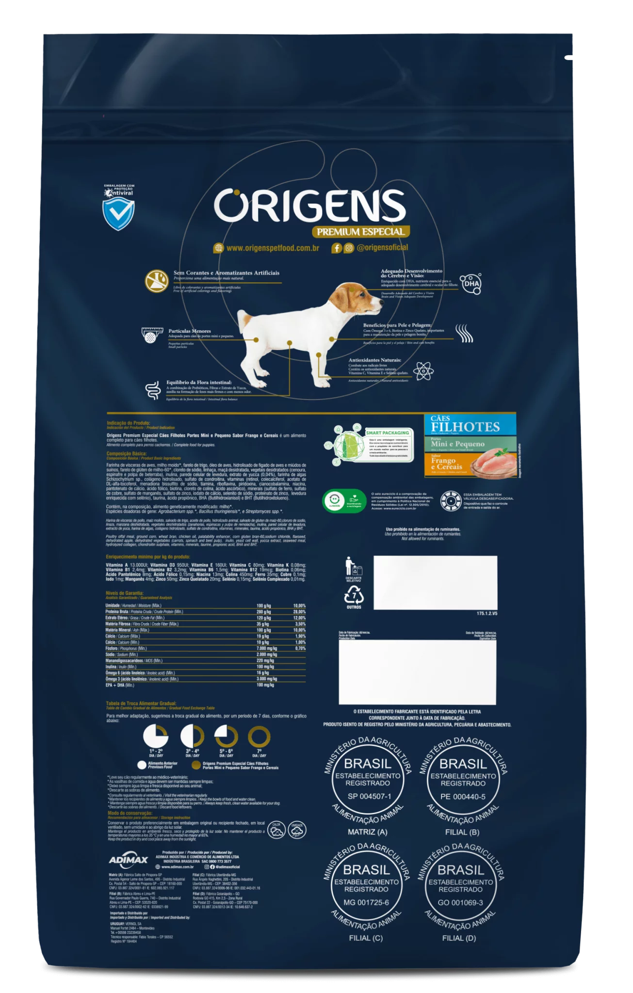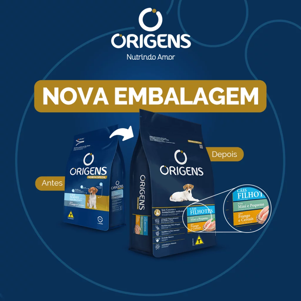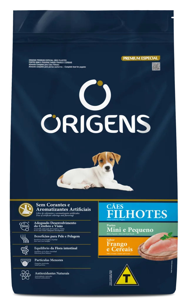 Origens Premium Especial Cães Filhotes Portes Mini e Pequeno Sabor Frango e Cereais