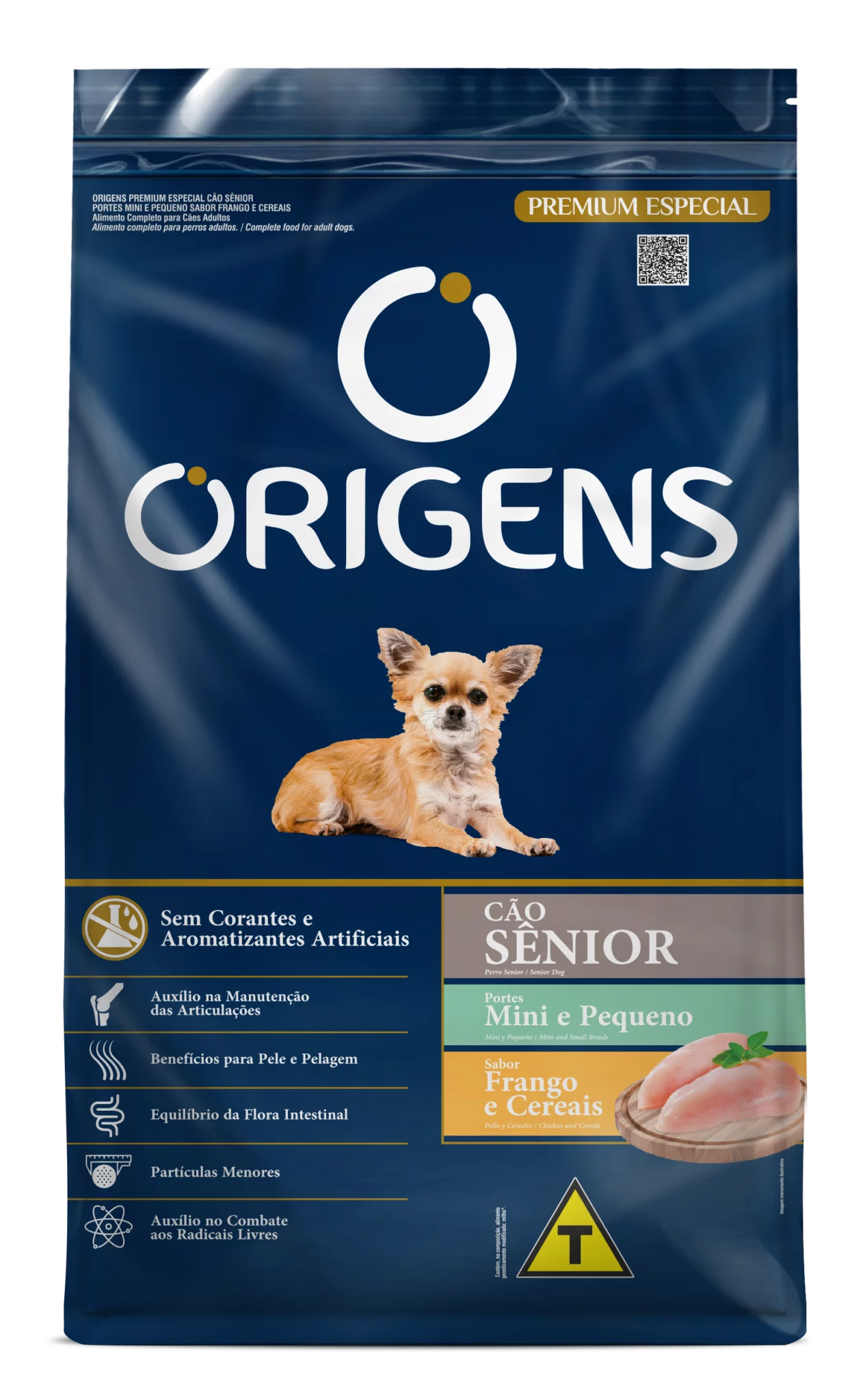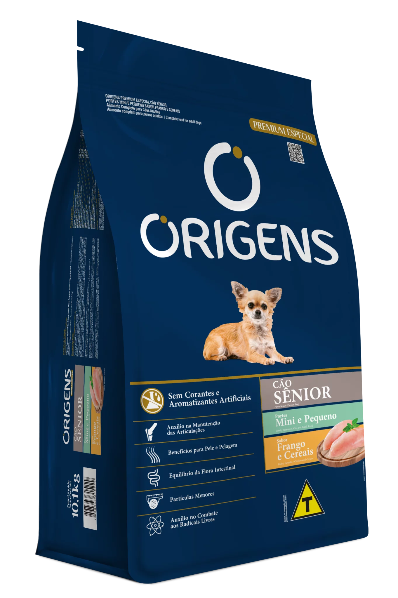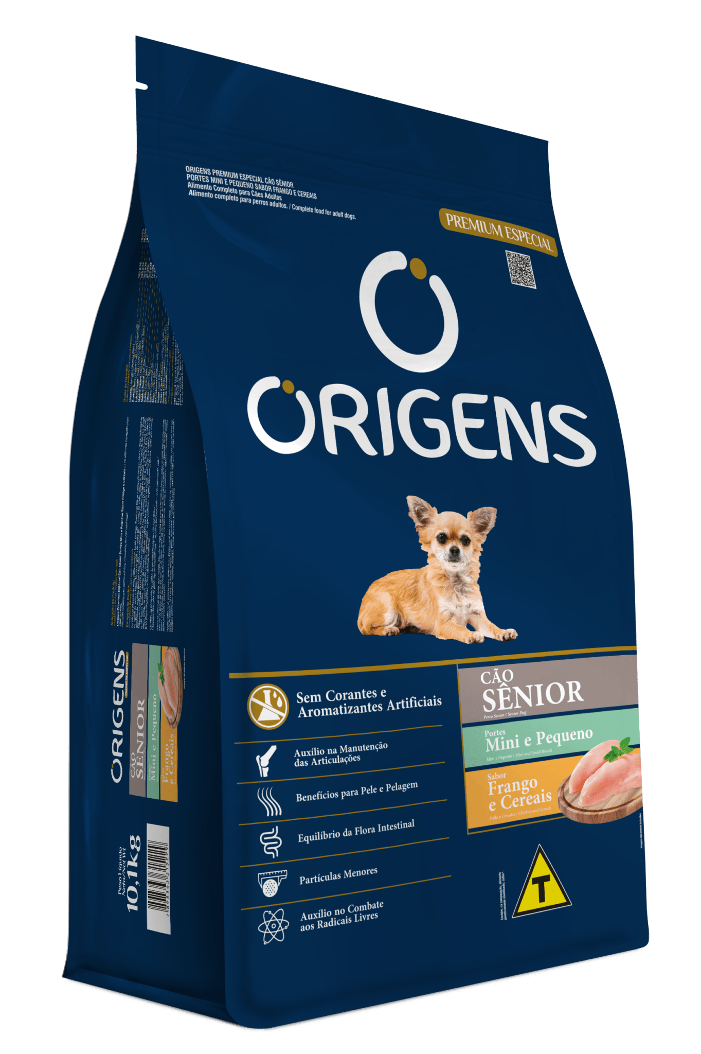 Origens é uma linha de alimentos Premium Especial que nutre o que há de melhor: o amor. Promover saúde e prazer a cada refeição é antes de tudo um ato de carinho, que estreita laços e prolonga os dias de alegria, amizade e amor incondicional entre tutores e seus cães e gatos. Origens Cão Sênior Portes Mini e Pequeno Sabor Frango e Cereais possui ingredientes de alta qualidade e não contém corantes e aromatizantes artificiais.