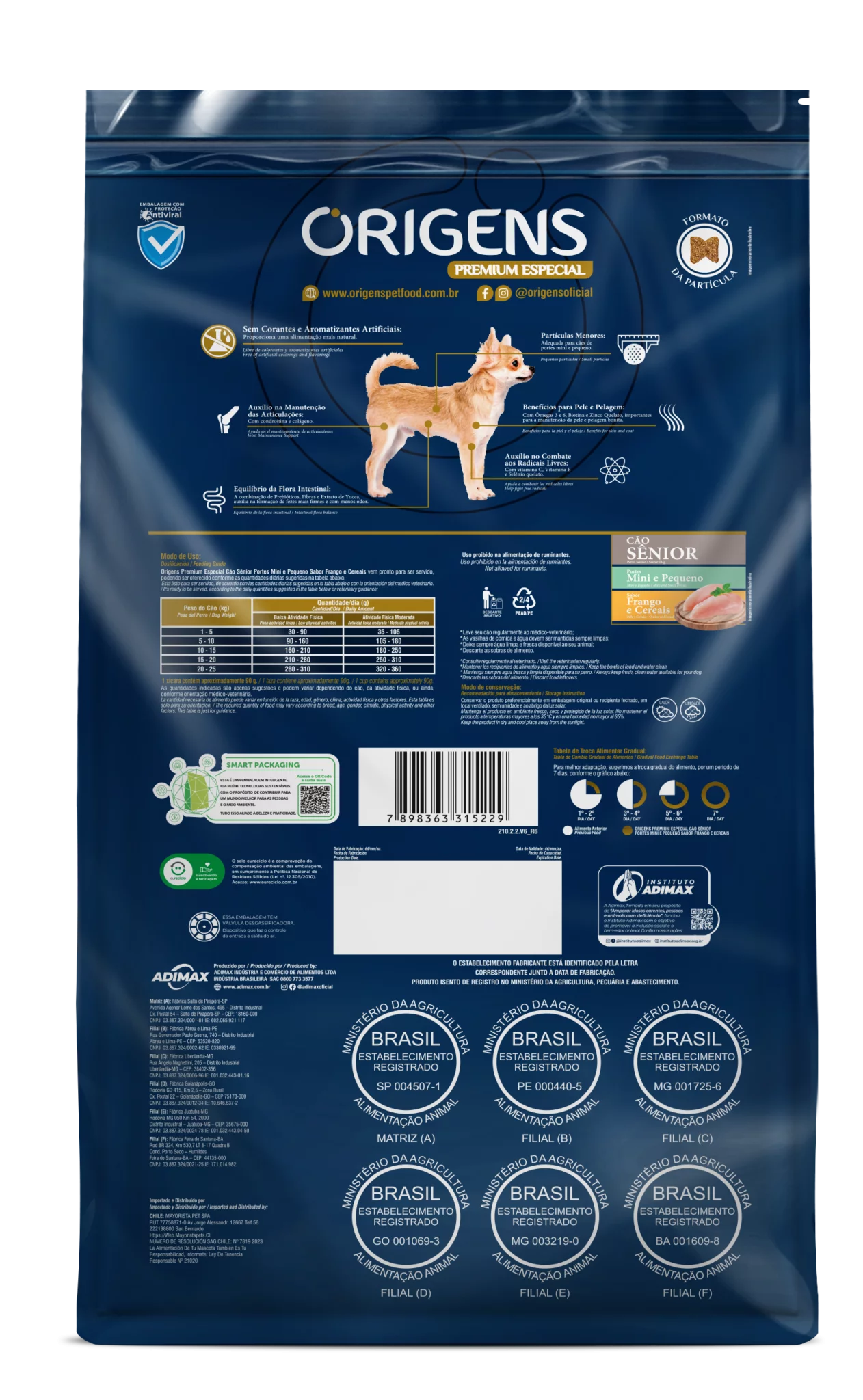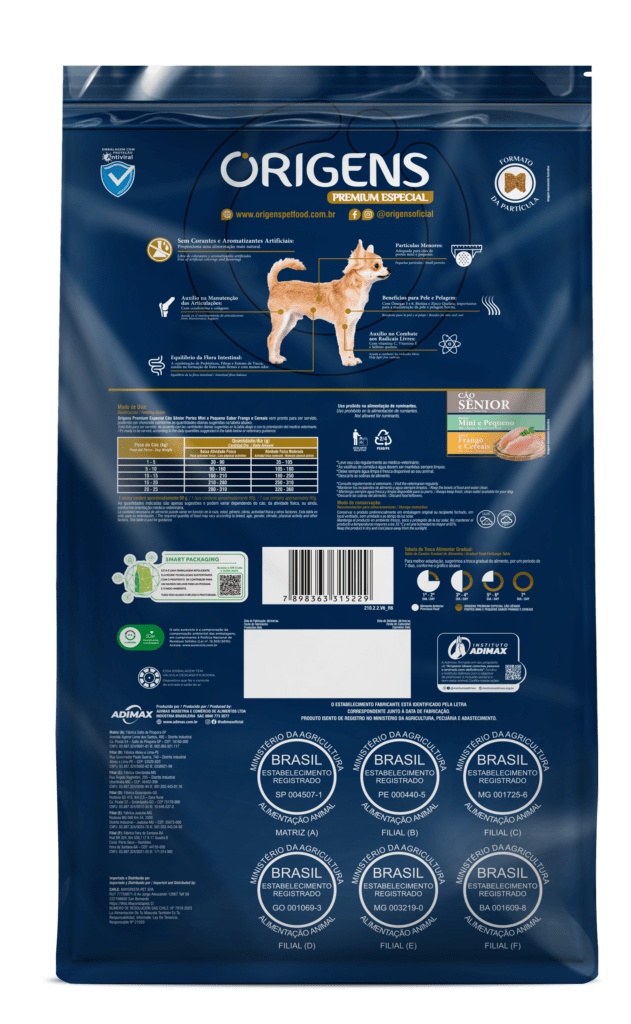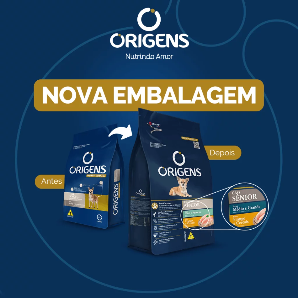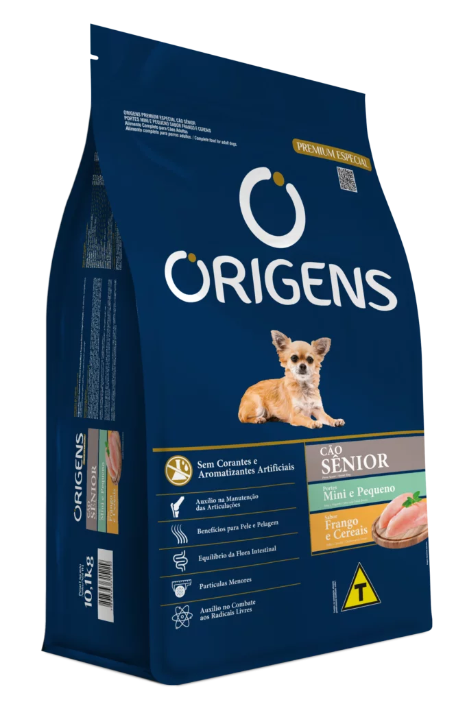 Origens é uma linha de alimentos Premium Especial que nutre o que há de melhor: o amor. Promover saúde e prazer a cada refeição é antes de tudo um ato de carinho, que estreita laços e prolonga os dias de alegria, amizade e amor incondicional entre tutores e seus cães e gatos. Origens Cão Sênior Portes Mini e Pequeno Sabor Frango e Cereais possui ingredientes de alta qualidade e não contém corantes e aromatizantes artificiais.