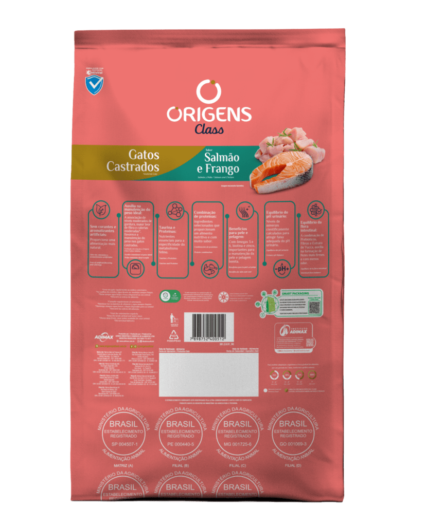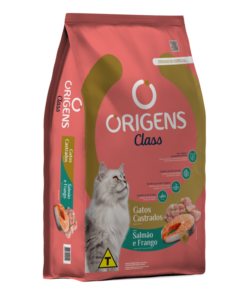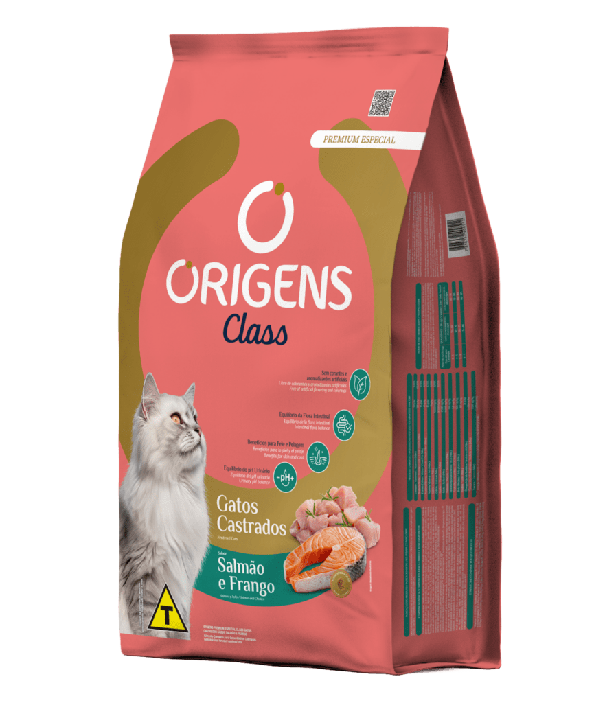 Origens Class é uma linha de alimentos Premium Especial formulada por especialistas e sob os conceitos mais atuais da nutrição de cães e gatos, consistindo em um alimento de alta qualidade. Com ingredientes selecionados, Origens Premium Especial Class Gatos oferece níveis nutricionais adequados para gatos castrados, além de permitir uma alta absorção e aproveitamento dos nutrientes pelo organismo do pet.