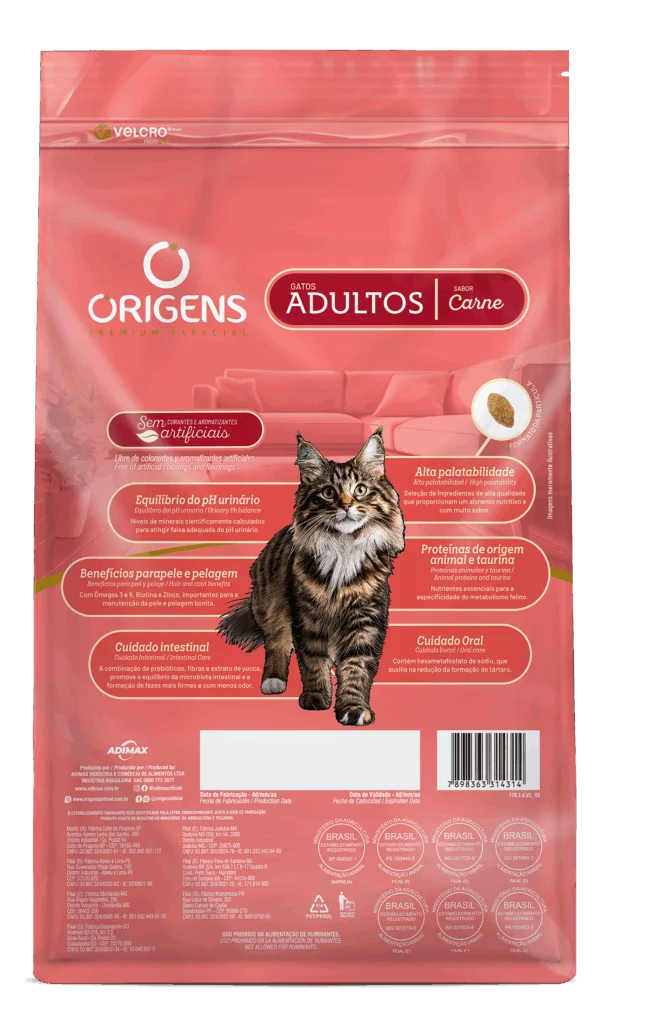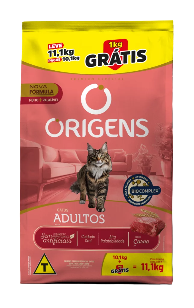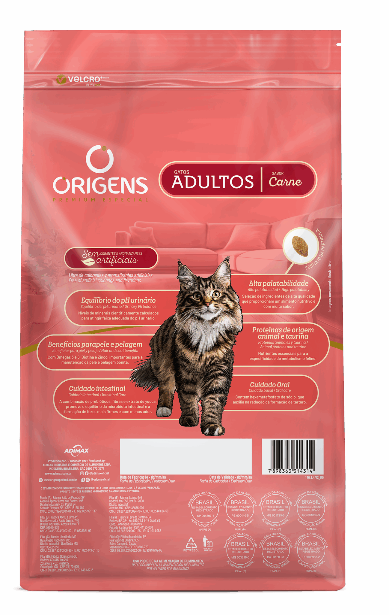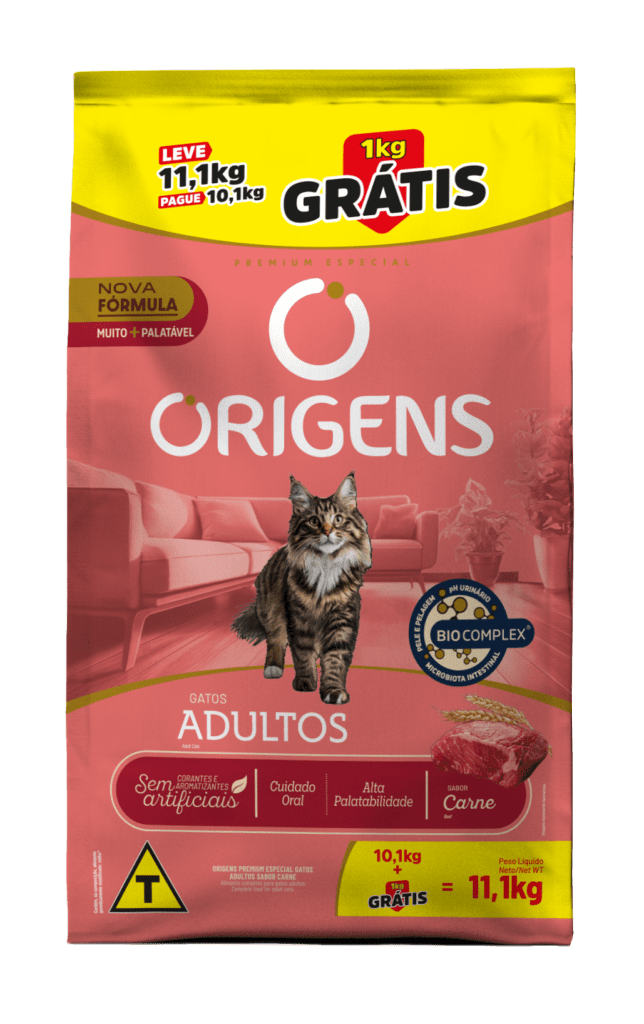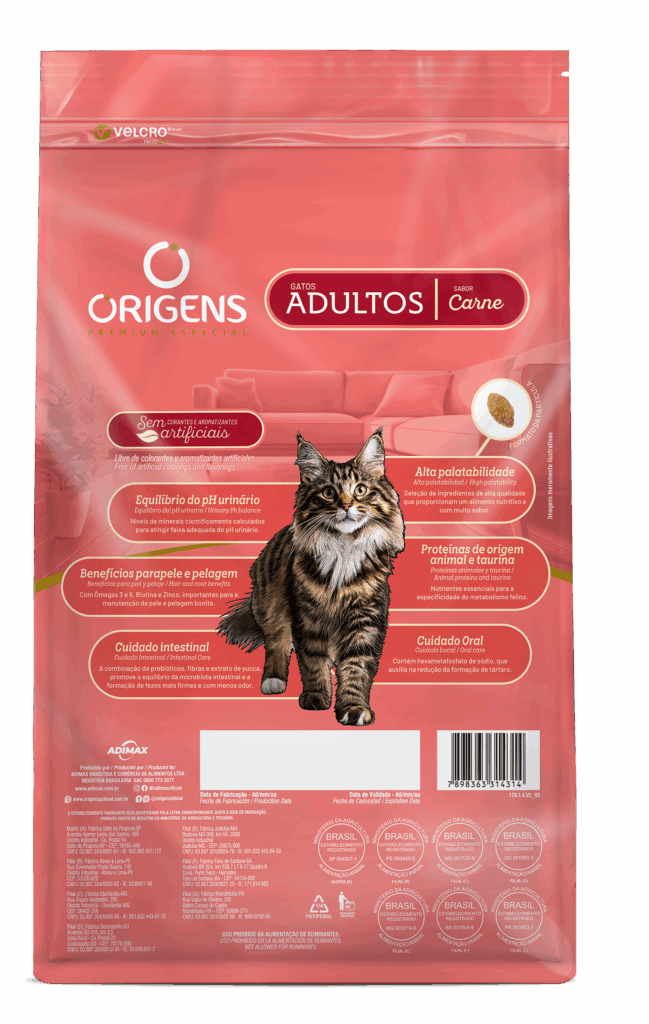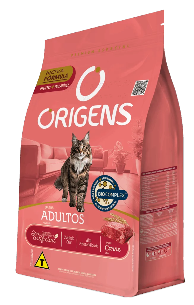 Origens é uma linha de alimentos Premium Especial que nutre o que há de melhor: o amor. Promover saúde e prazer a cada refeição é antes de tudo um ato de carinho, que estreita laços e prolonga os dias de alegria, amizade e amor incondicional entre tutores e seus cães e gatos. Origens Gatos Adultos Sabor Carne possui ingredientes de alta qualidade e não contém corantes e aromatizantes artificiais. Indicado para gatos ativos e sem tendência a engordar.