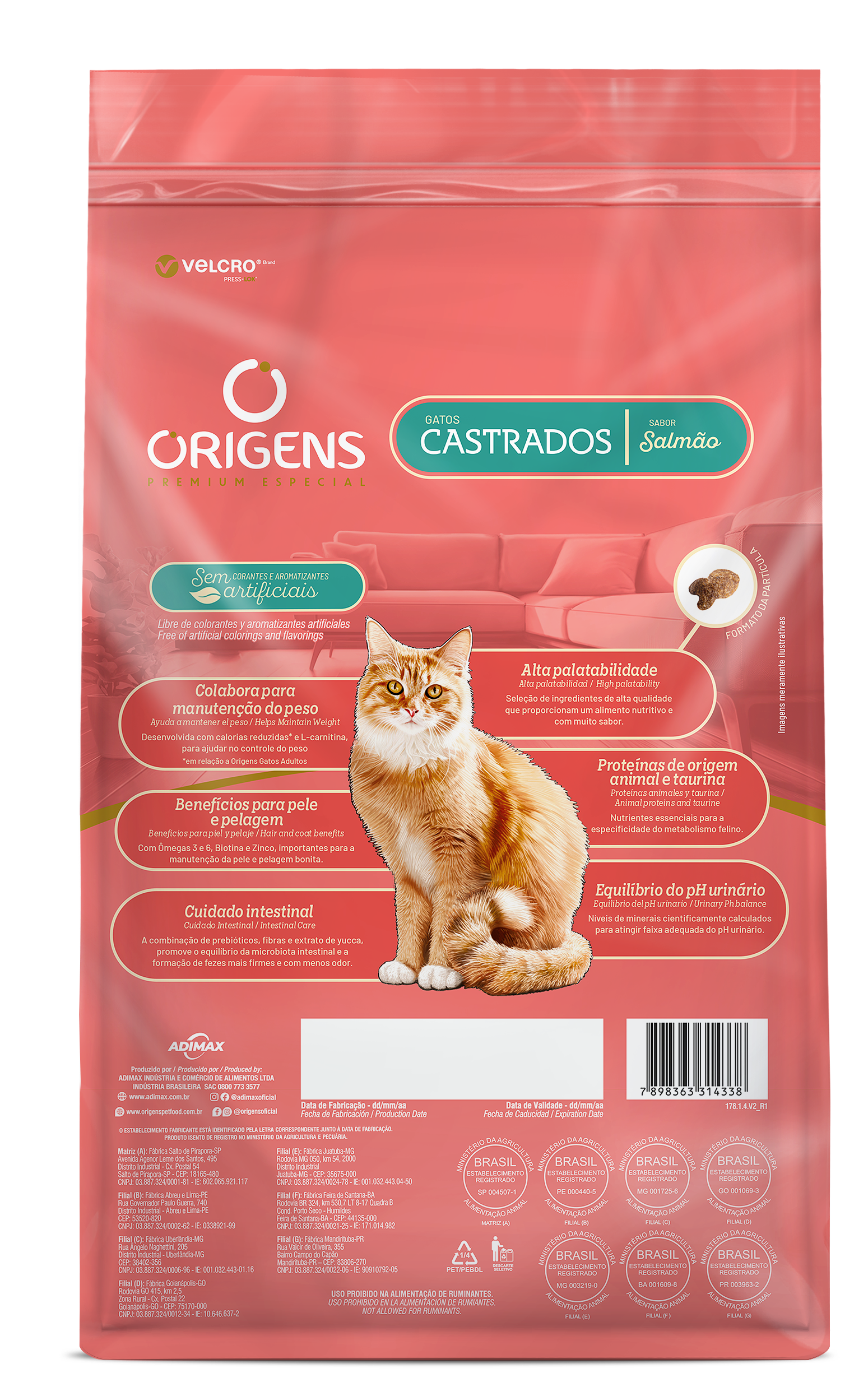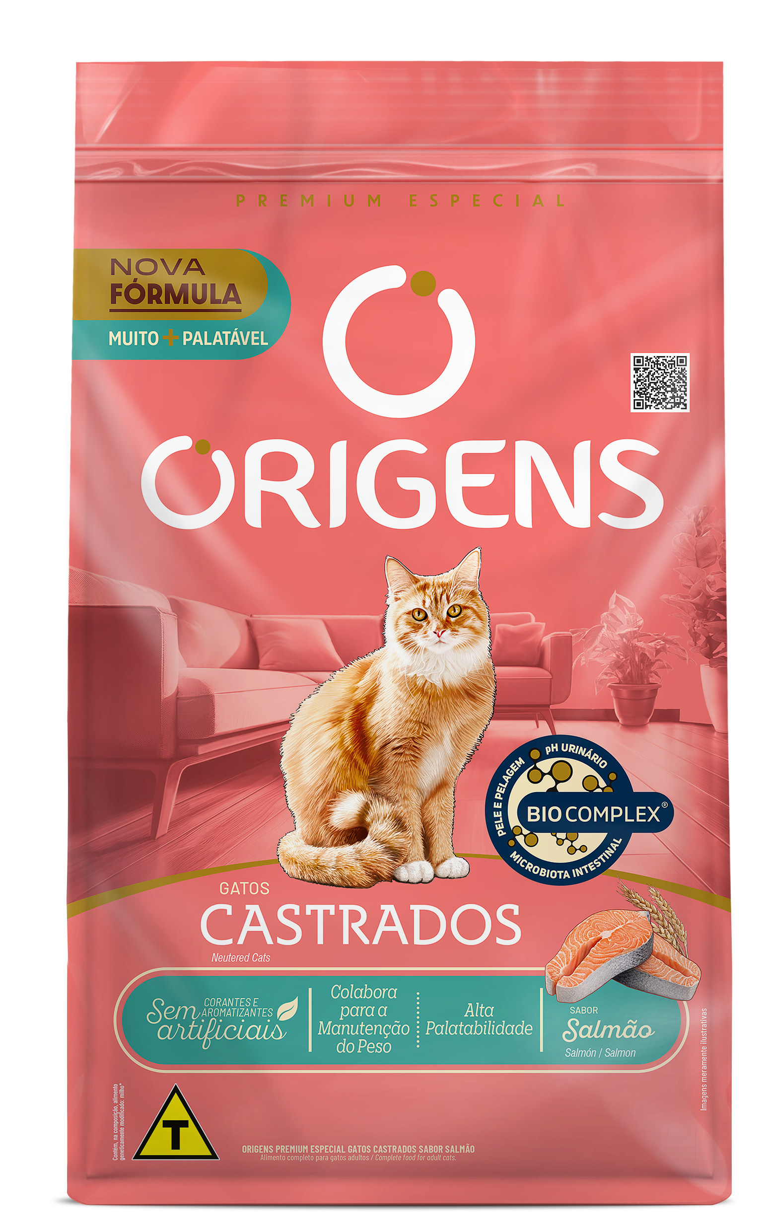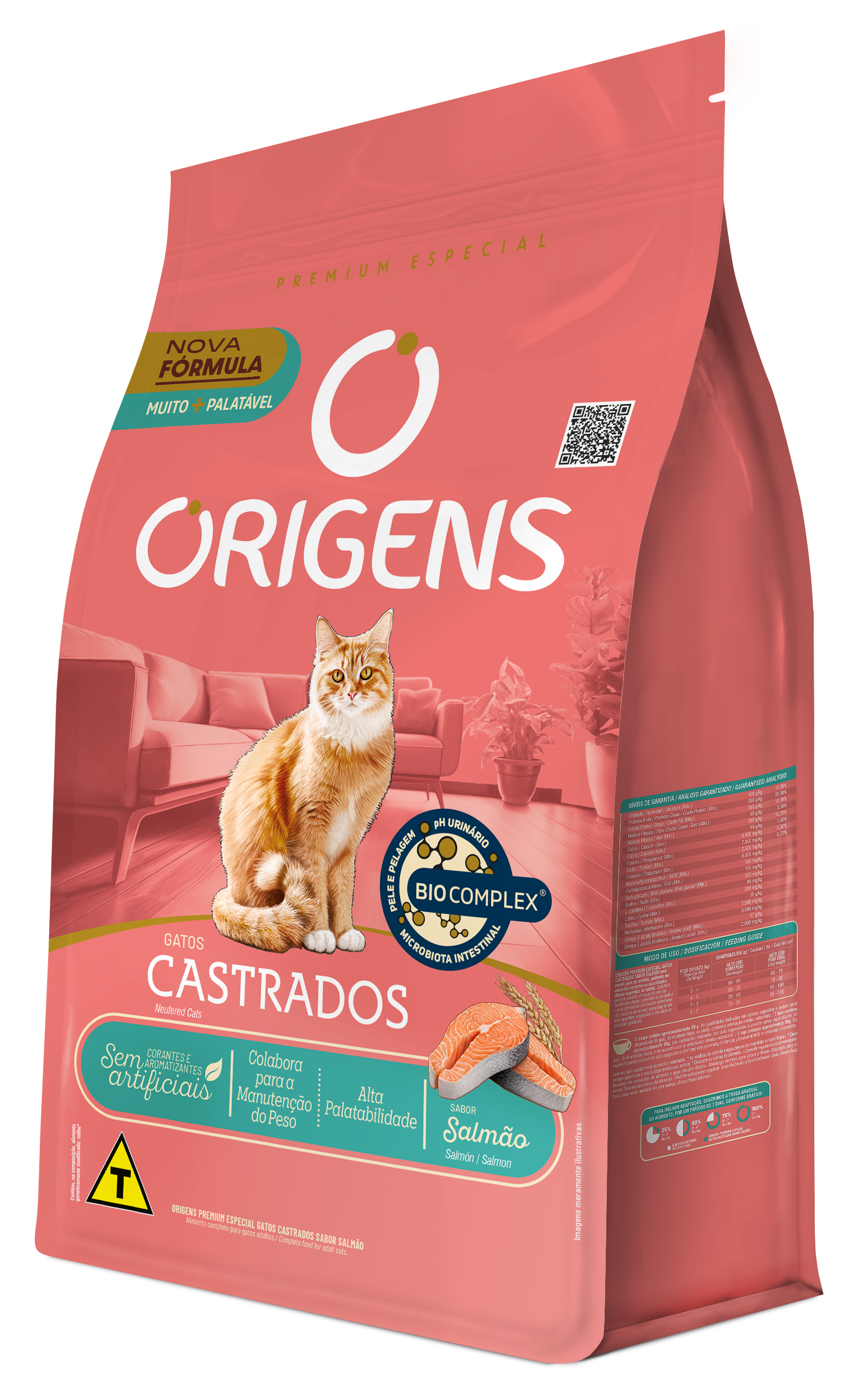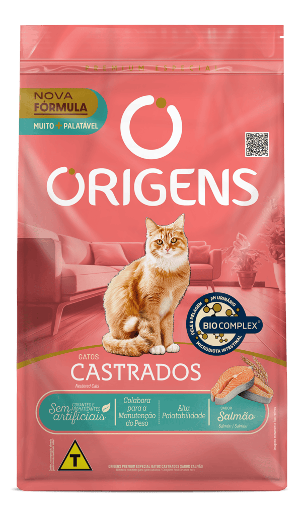 Origens é uma linha de alimentos Premium Especial que nutre o que há de melhor: o amor. Promover saúde e prazer a cada refeição é antes de tudo um ato de carinho, que estreita laços e prolonga os dias de alegria, amizade e amor incondicional entre tutores e seus cães e gatos. Origens Gatos Castrados Sabor Salmão possui ingredientes de alta qualidade e não contém corantes e aromatizantes artificiais. Indicado para gatos castrados, sedentários, com tendência a engordar e para quem tem mais de um gato em casa.