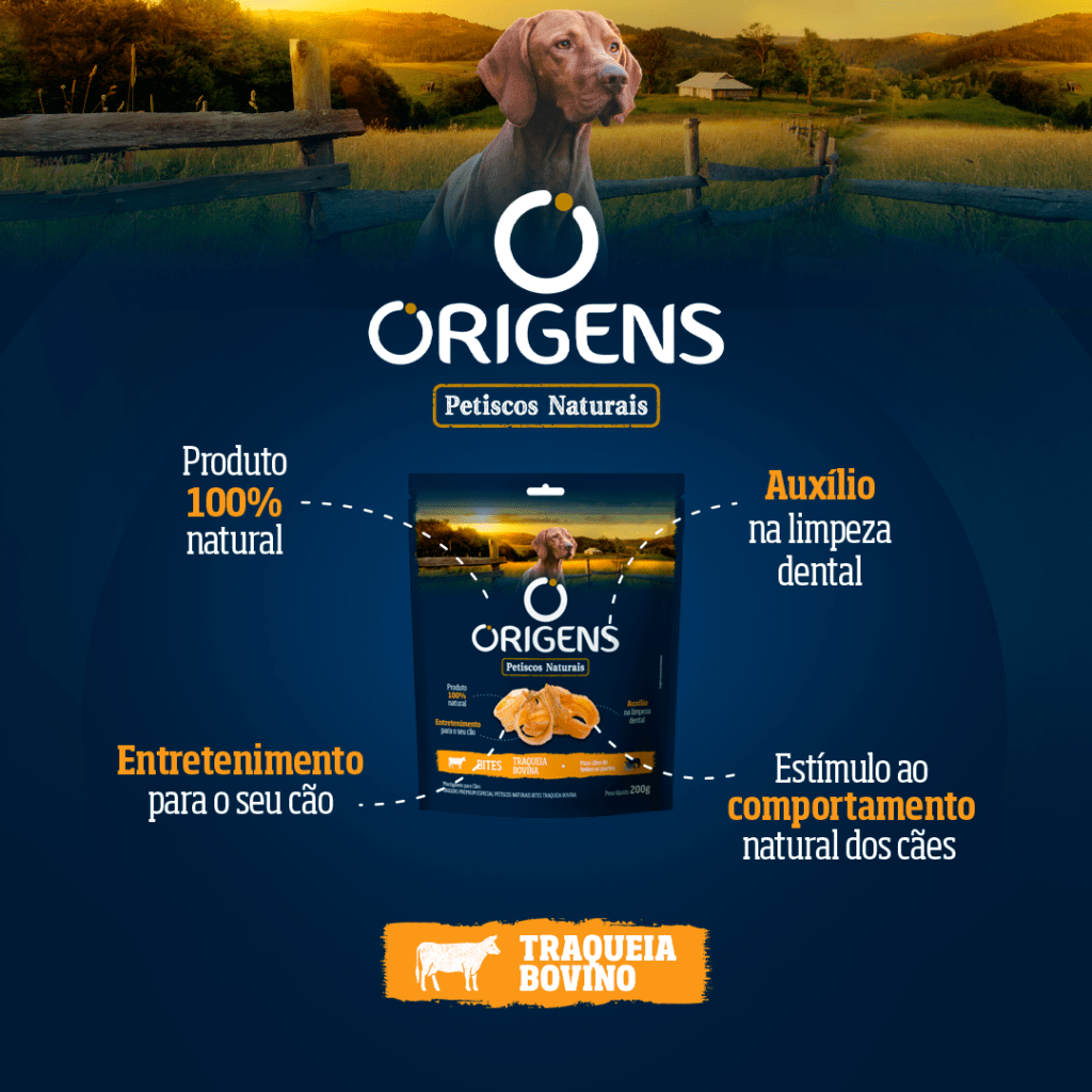 Origens Petiscos Naturais é uma linha de produtos mastigáveis que tem como objetivo oferecer momentos que relembram a origem ancestral dos cães. A linha conta com 10 produtos 100% naturais, que utilizam apenas coprodutos bovinos desidratados como ingredientes, e não possuem aditivos, conservantes ou palatabilizantes. Origens Petiscos Naturais contribui para aliviar o estresse do cão, estimulando comportamentos naturais como morder e roer e também auxilia para a limpeza dental.