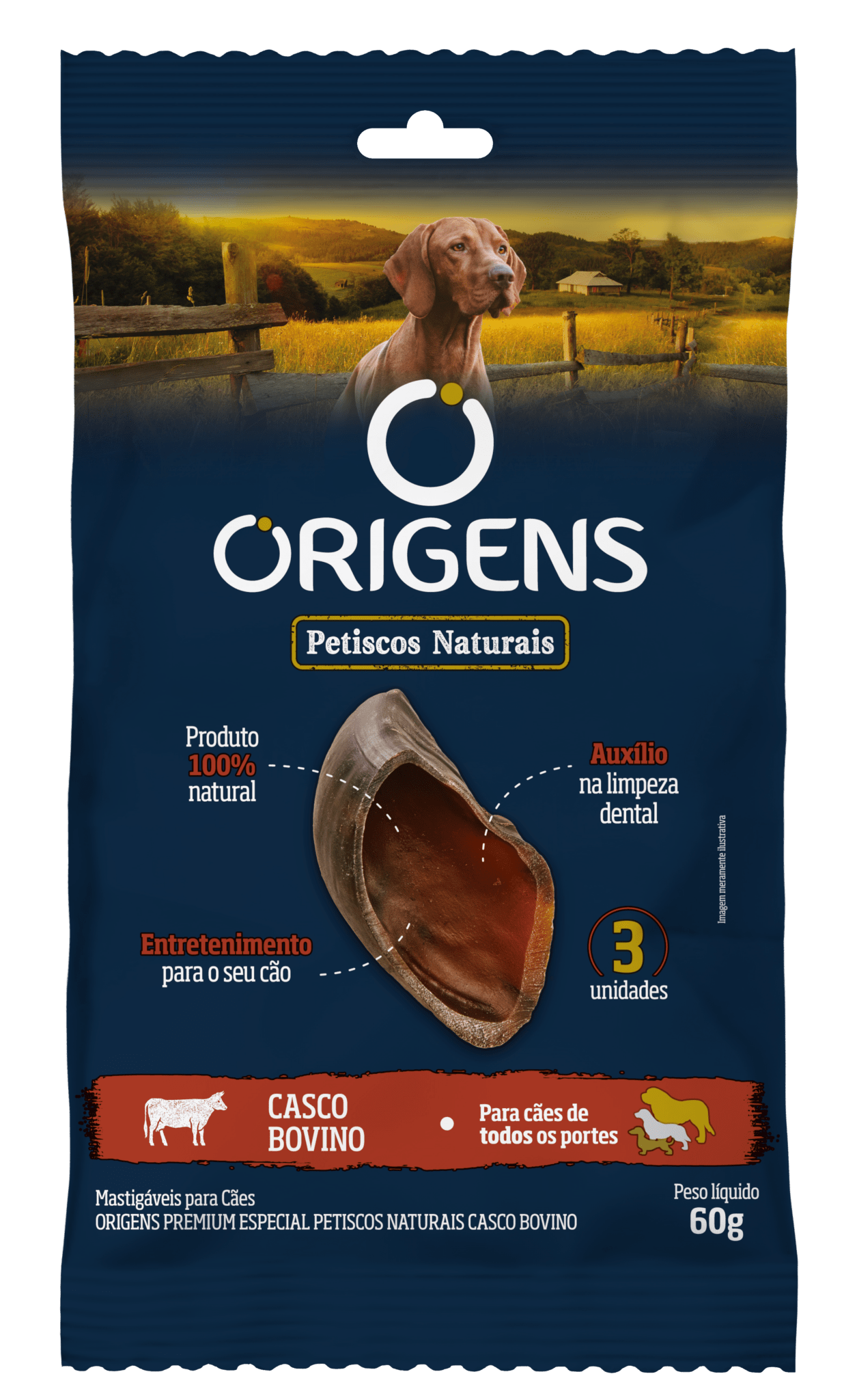 Origens Petiscos Naturais é uma linha de produtos mastigáveis que tem como objetivo oferecer momentos que relembram a origem ancestral dos cães. A linha conta com 10 produtos 100% naturais, que utilizam apenas coprodutos bovinos desidratados como ingredientes, e não possuem aditivos, conservantes ou palatabilizantes. Origens Petiscos Naturais contribui para aliviar o estresse do cão, estimulando comportamentos naturais como morder e roer e também auxilia para a limpeza dental.