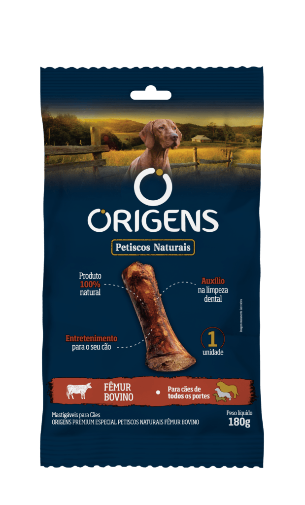 Origens Petiscos Naturais é uma linha de produtos mastigáveis para cães, 100% naturais, livres de aditivos e feitos apenas com 01 ingrediente: coprodutos bovinos desidratados. A linha conta com 10 produtos, que proporcionam enriquecimento ambiental e entretenimento aos cães, além de auxiliarem para a limpeza dental.