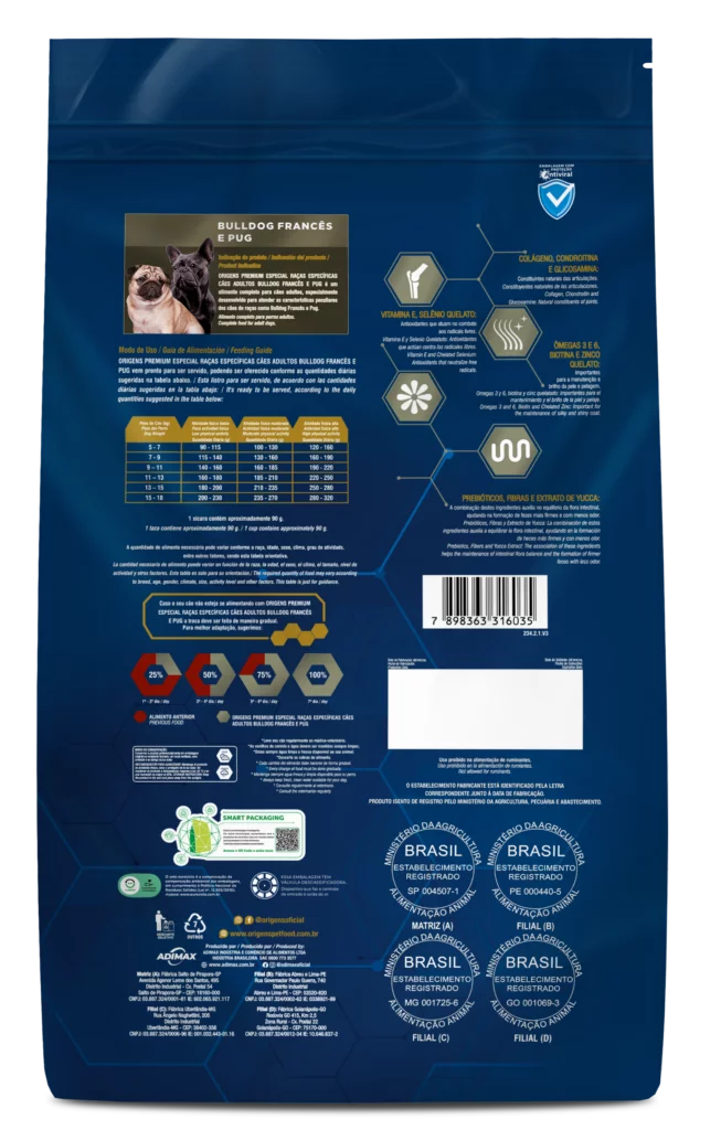 1 kg10.1 kgOrigens Raças Específicas é uma linha de alimentos Premium Especial para raças específicas que nutre o que há de melhor: o amor. Promover saúde e prazer a cada refeição é antes de tudo um ato de carinho, que estreita laços e prolonga os dias de alegria, amizade e amor incondicional entre tutores e seus cães. Origens Raças Específicas Bulldog Francês e Pug não contém corantes e aromatizantes artificiais e possui uma nutrição específica para cães adultos das raças Bulldog Francês e Pug.