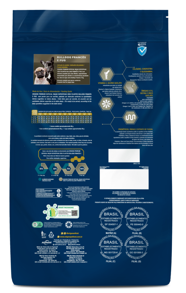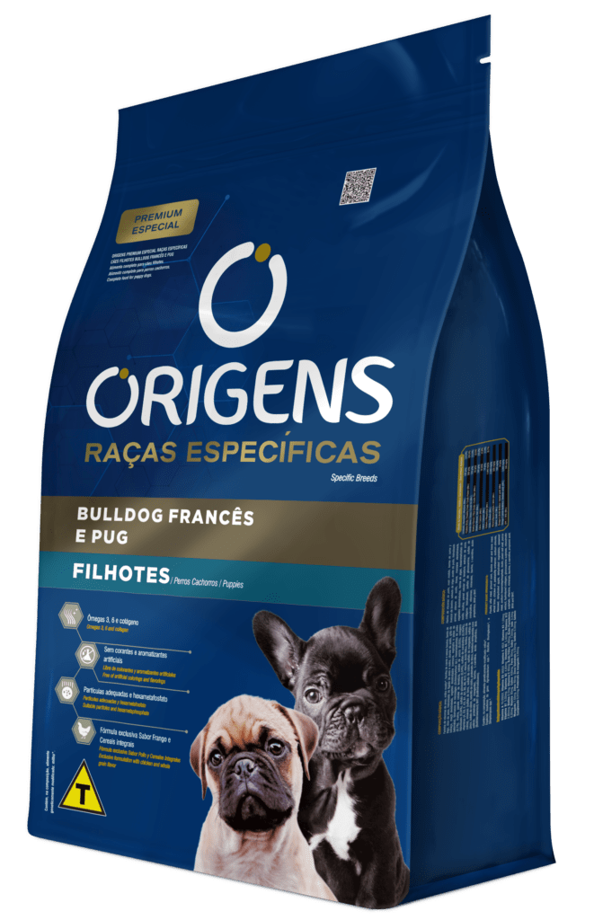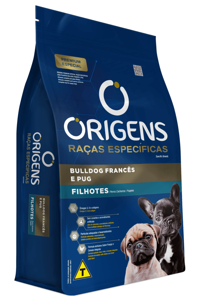 Origens Raças Específicas é uma linha de alimentos Premium Especial para raças específicas que nutre o que há de melhor: o amor. Promover saúde e prazer a cada refeição é antes de tudo um ato de carinho, que estreita laços e prolonga os dias de alegria, amizade e amor incondicional entre tutores e seus cães. Origens Raças Específicas Bulldog Francês e Pug não contém corantes e aromatizantes artificiais e possui uma nutrição específica para cães filhotes das raças Bulldog Francês e Pug.