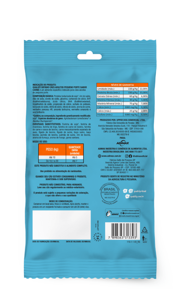 Ideal para os cães adultos, o Bifinho é uma ótima forma de trazer mais sabor as brincadeiras e rotina do seu pet, sem abrir mão da alimentação saudável. Já que possui ingredientes balanceados, de alta qualidade e sem corantes artificiais.