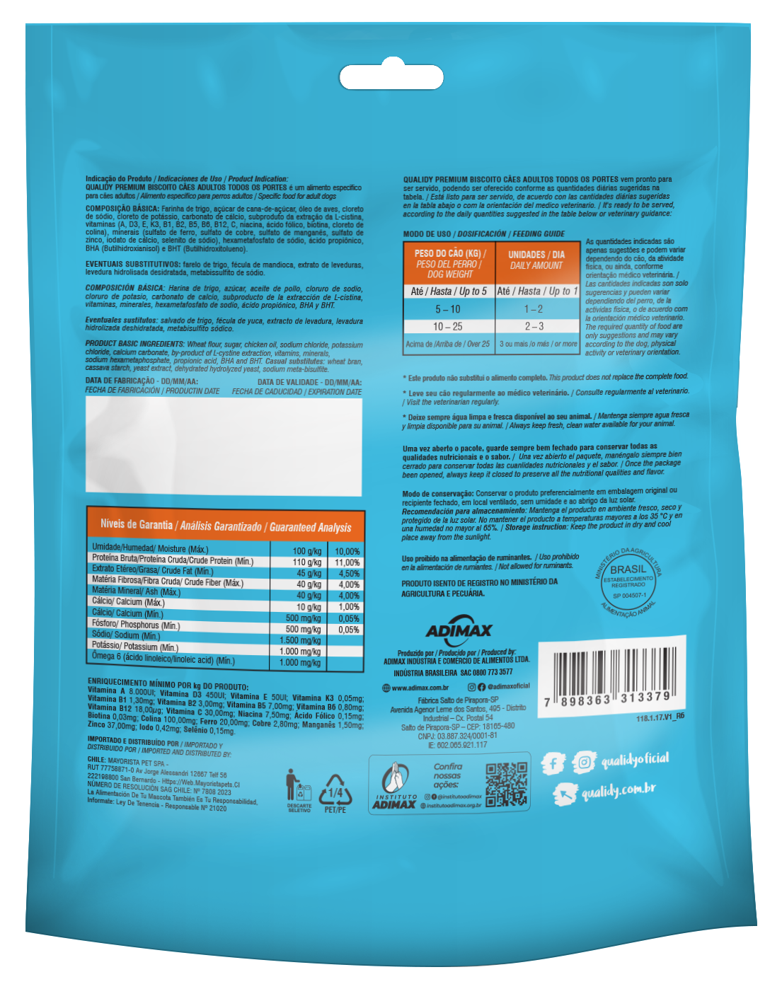 Indicado para todos os portes, os biscoitos da Qualidy para cães adultos contam com ingredientes de qualidade, vitaminas e minerais essenciais. Ou seja, a combinação certa para o seu pet!
